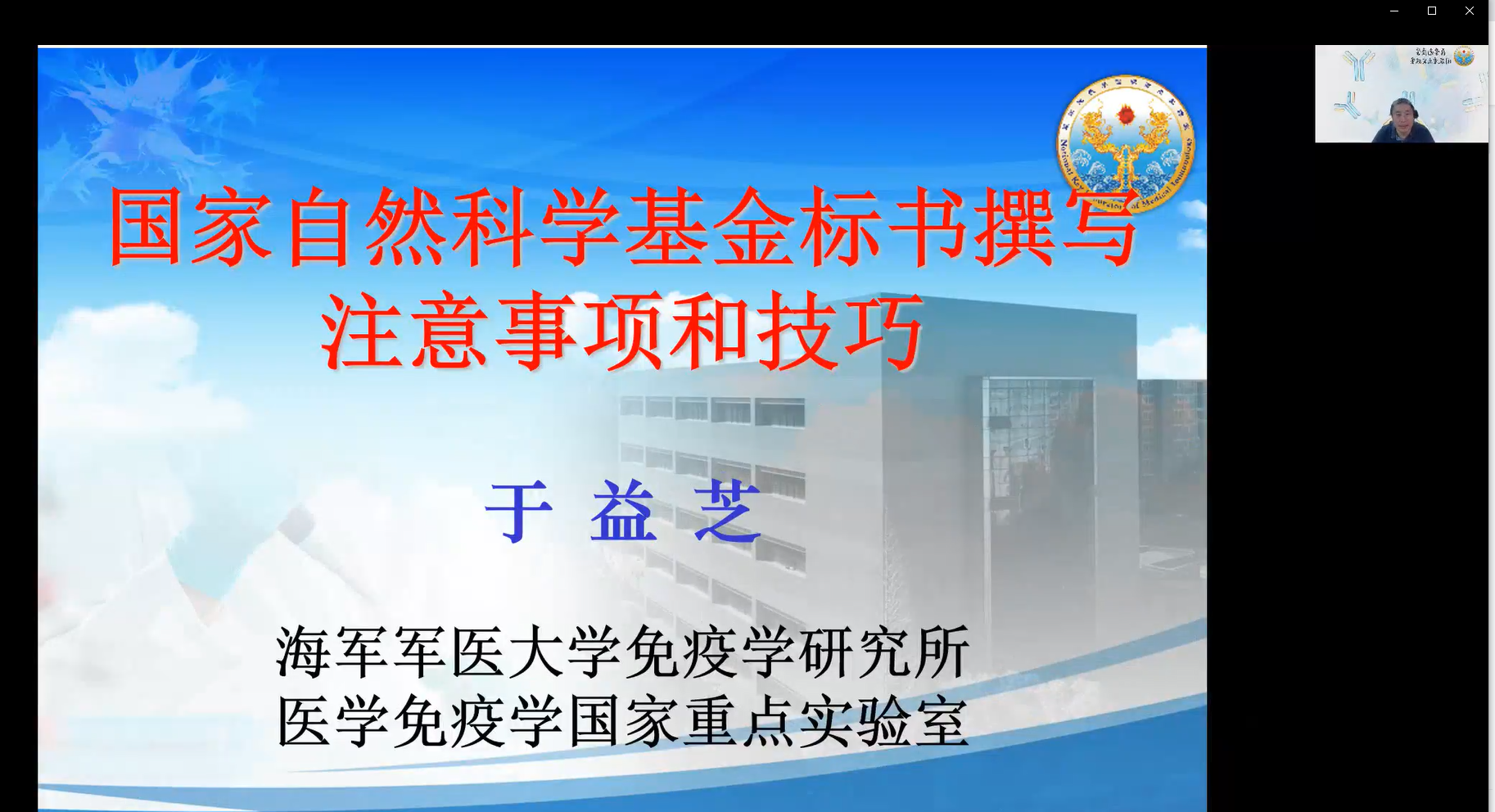 海军军医大学博士生导师于益芝教授以个人在国家自然科学基金标书撰写和申请中的体会,和各位老师分享了基金申报的注意事项和申报技巧。