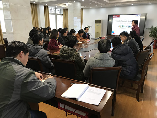 2月20日下午,韩国江原大学教授,博士生导师,Eun-Taek Han给我院师生做了“Recent progress of discovery of novel erythrocyte binding proteins for Plasmodium vivax”的专题学术报告。韩教授结合自己的工作实践,从研究领域的选择、韩国疟疾流行情况、疟原虫入侵红细胞的研究进展等方面进行了介绍,并就靶标的筛选、蛋白表达、研究生招生标准等方面与在座师生进行了亲切交流与讨论。