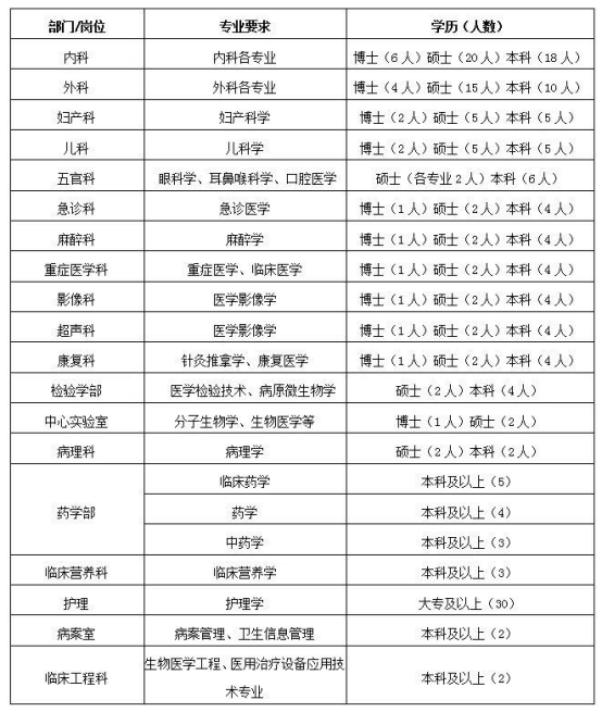 为满足创建三级甲等医院的发展需要,加强医院人才队伍建设,谋求更大发展,现诚邀有志之士加盟!