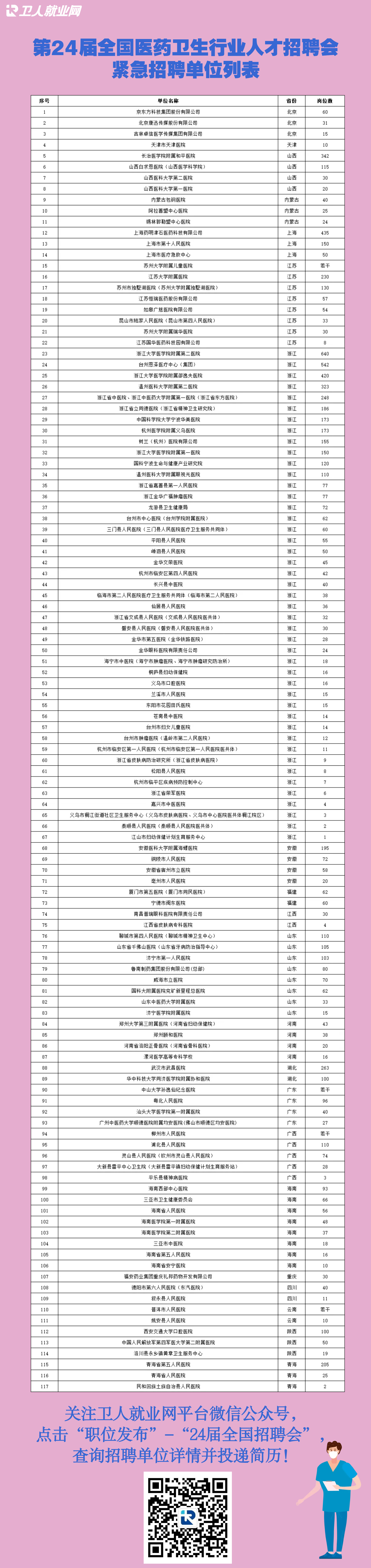 第24届全国医药卫生行业人才招聘会紧急招聘单位列表