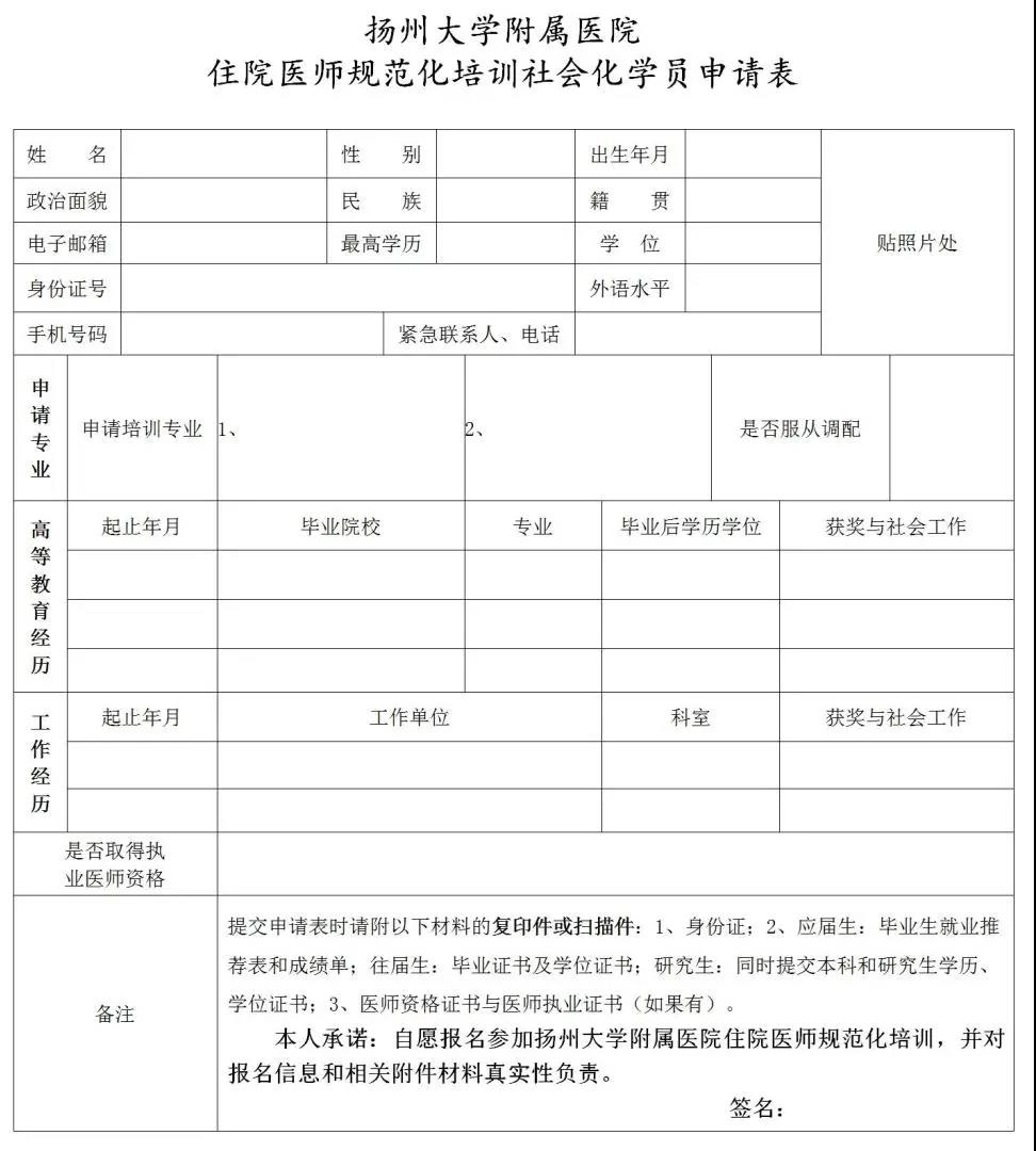 ① 《住院医师规范化培训学员申请表》电子版一份(见附件);