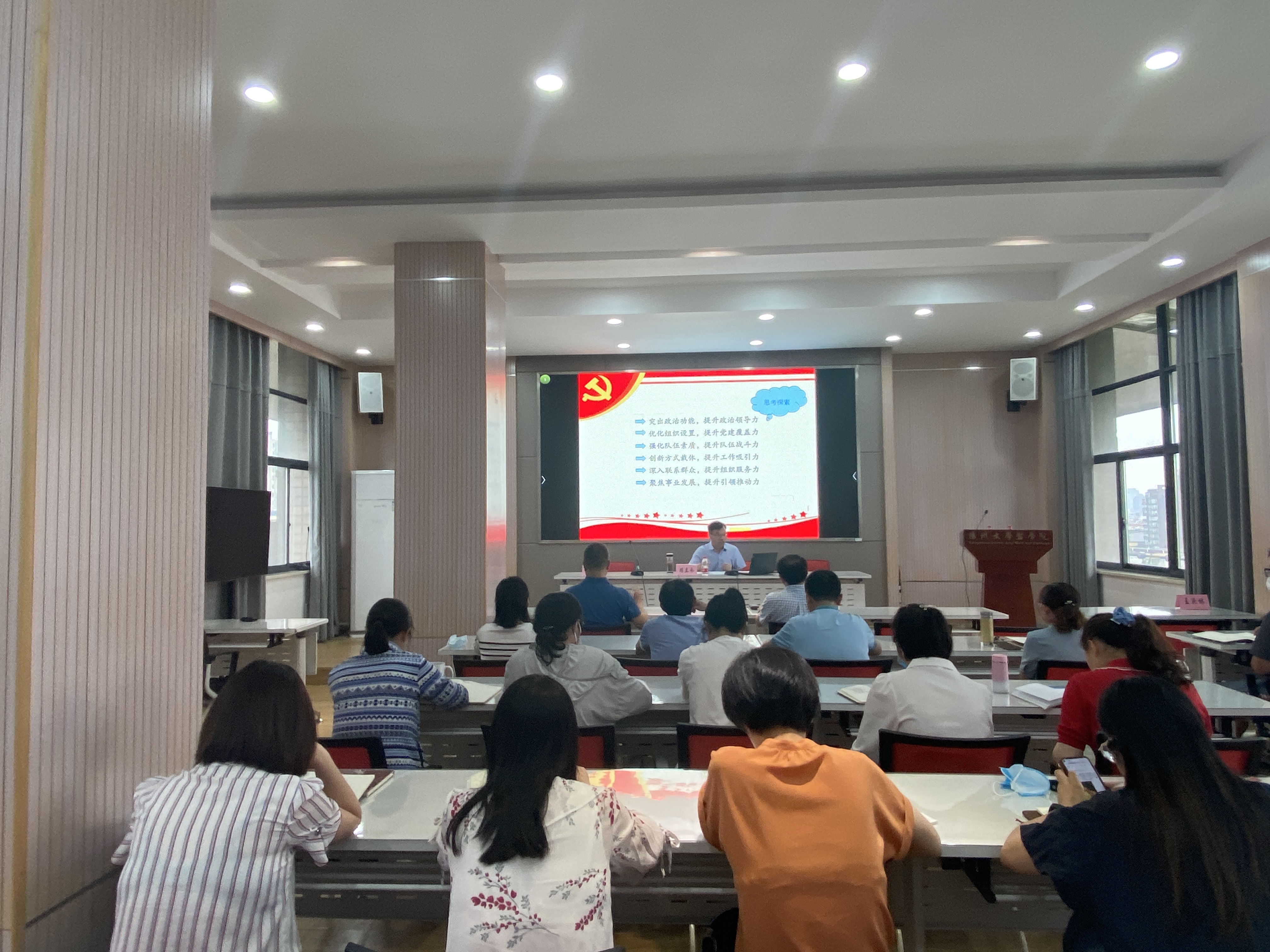 本次讲座以“推进基层党组织强基创优提升组织力的思考与探索”为主题,陈部长从组织力之思、“三全三入”工作法和支部工作创新三个方面切入,为支部书记和机关工作人员全面梳理了基层党支部工作的政策要求和方式方法,并通过众多支部创新案例的解读,为今后党支部工作的新发展提供了思路。