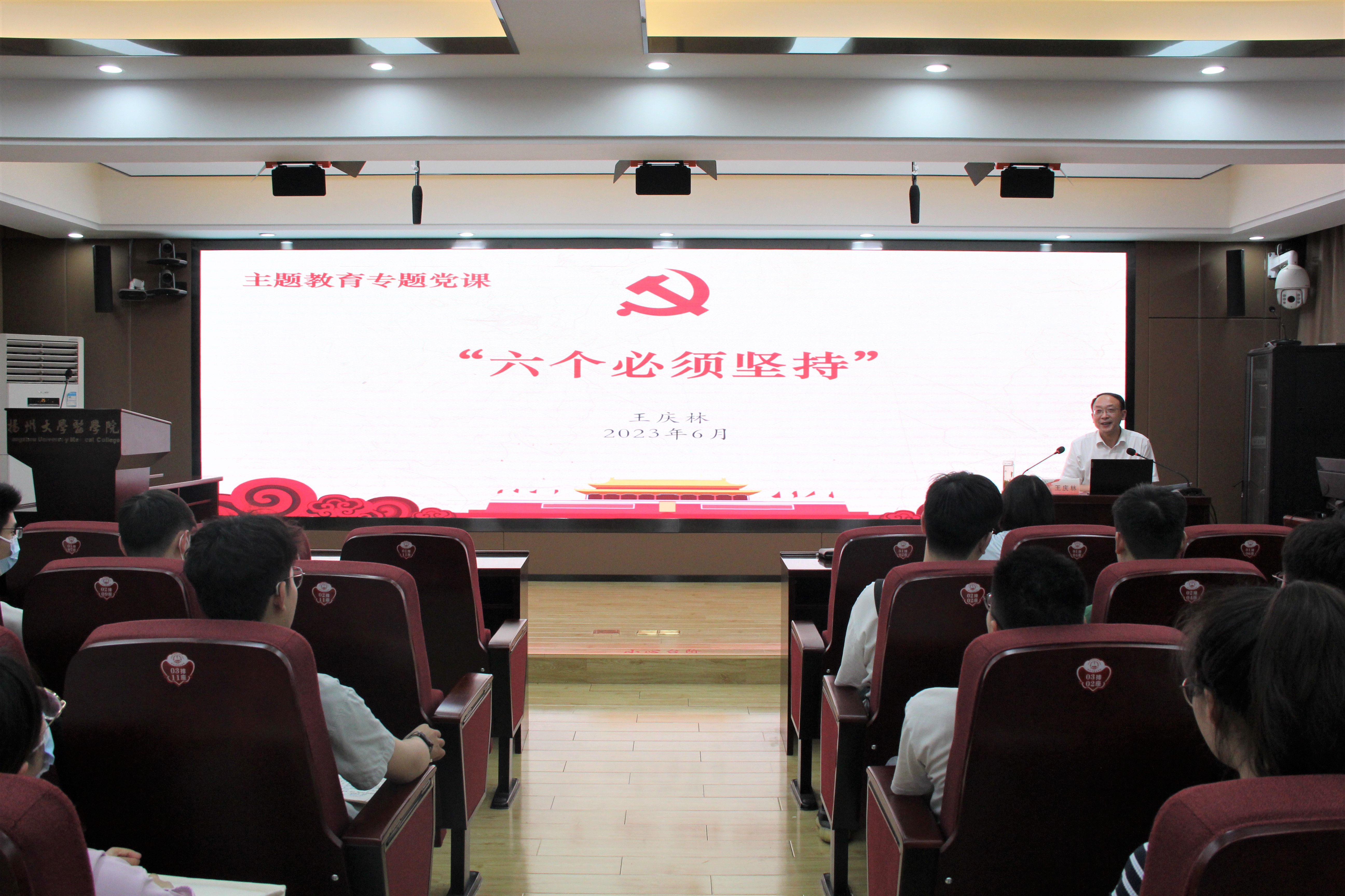2023年6月8日,医学院举行主题教育专题党课。主题党课以学习“六个必须坚持”为主题,结合正在开展的主题教育,带领学生党员深入学习了“六个必须坚持”的丰富内涵。