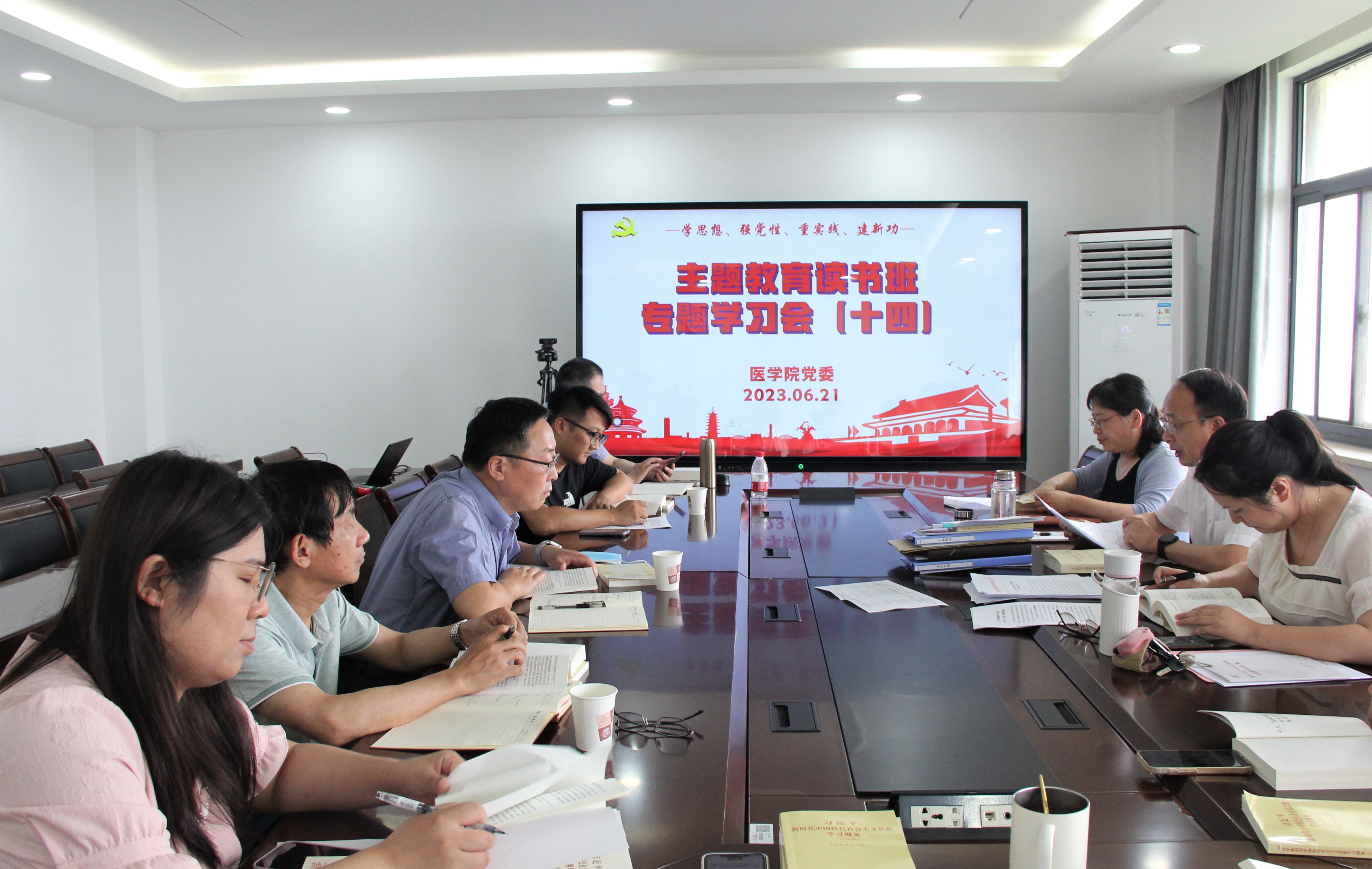 2023年6月21日,医学院党委理论学习中心组召开主题教育读书班集体学习会,集体学习了《习近平新时代中国特色社会主义思想专题摘编》第18专题和《习近平新时代中国特色社会主义思想学习纲要》(2023年版)的主要内容。