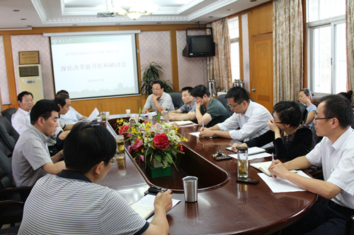 2014年8月19日,医学院召开党委理论学习中心组扩大会议,专题研讨深化改革提升医科的相关事宜。与会人员集体学习了江苏省政府《关于深化教育领域综合改革的实施意见》,重点围绕提升医科和直属附属医院建设两大议题,展开了充分讨论。