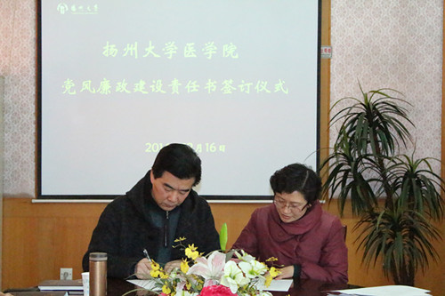 签订仪式现场,根据医学院党风廉政建设责任网络,院领导分别与各自的责任对象庄重签订了党风廉政建设责任书。