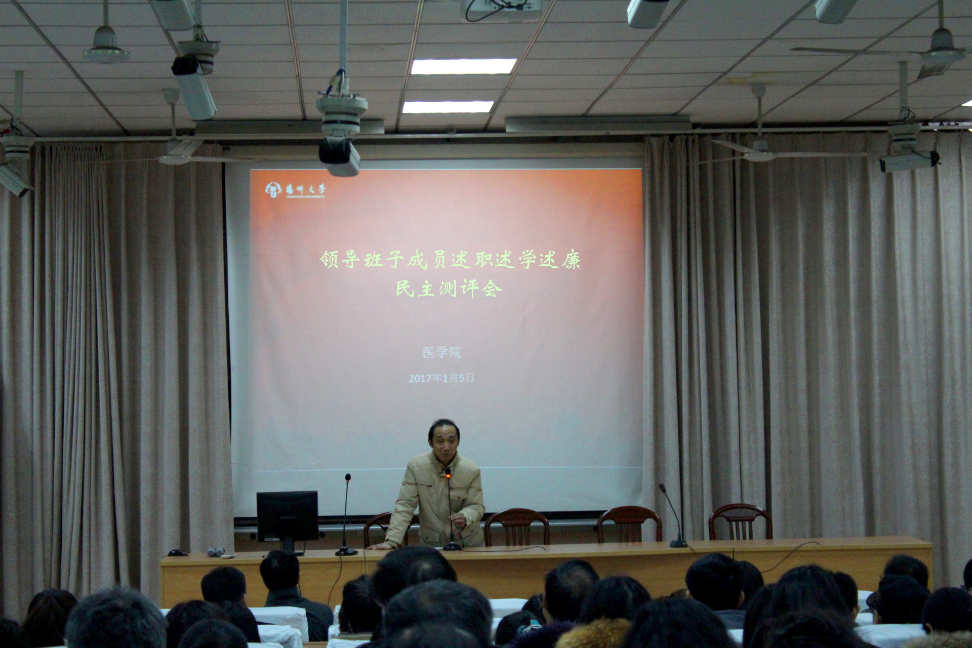 在听取班子成员逐一述职述学述廉后,叶柏森对学院2016年取得的成绩给予了肯定,同时他提出三点希望和要求,为学院指明努力方向:第一、进一步聚焦发展目标。医学院的发展要紧紧围绕建设“国内一流、国际知名、特色鲜明的高水平研究型大学”奋斗目标,眼睛向上,注重以人为本,推进综合改革。第二,进一步聚力内涵建设。学院要走“人才强院”的发展道路,一方面着力引进高层次领军才,另一方面提供条件,对现有师资加强培养。对实习医院的遴选要严格把关,尽量选择高水平医院。同时,要把本科生的考研升学率作为衡量培养质量的重要指标。第三、进一步营造干事奋进的院风。在即将迎来的学院整体搬迁工作中,要坚持环境建设与文化建设并重,展现建设高水平医学院的责任担当。