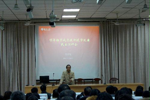 15日下午,学院召开大会,听取院领导班子成员述职述学述廉,并对班子成员进行民主测评。校党委副书记、副校长叶柏森出席并讲话,全院教职工和部分学生代表参加了大会。