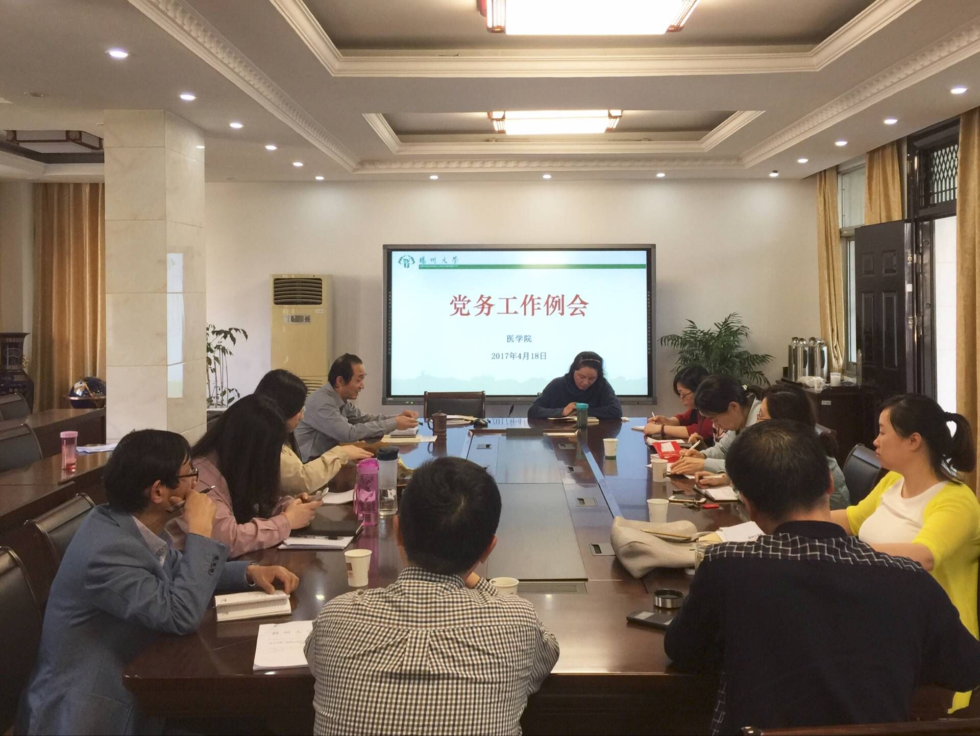 4月18日下午,学院召开党务工作例会,交流和布置近期工作。院党委书记王炜,副书记陈轶群,各党支部书记出席。