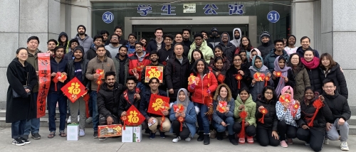 2020年1月15日下午,院党委书记徐蕾老师、党委副书记花瑞锋老师以及留学生办公室和留学生班班主任一同来到路北31号公寓看望春节留校的留学生同学们。