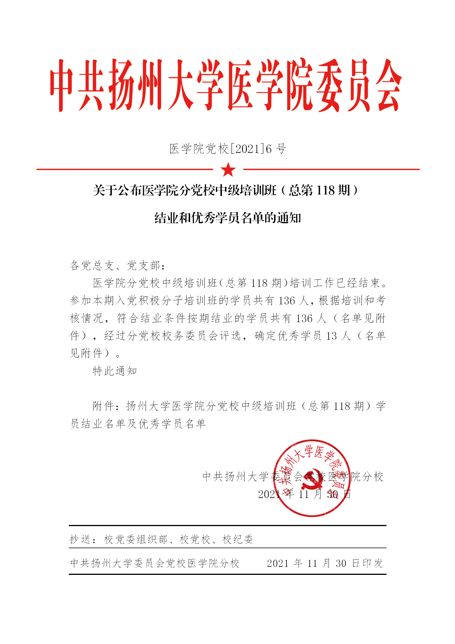 扬州大学医学院分党校中级培训班(总第118期)学员