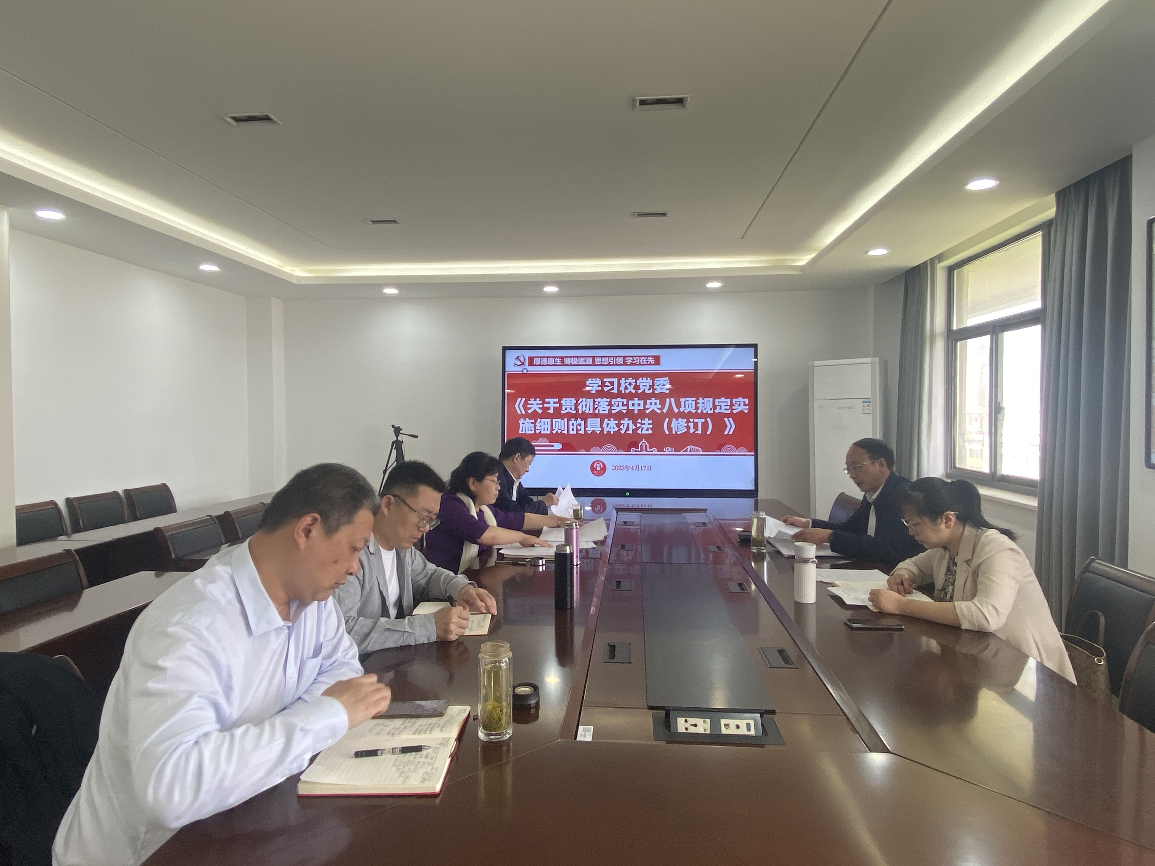 4月17日,医学院党委召开专题会议,学习学校《关于贯彻落实中央八项规定实施细则的具体办法(修订)》。会议强调,学院党政领导干部要对照新修订的实施细则,从改进调查研究、精简会议表彰、精简文件简报、规范因公出国 (境)、改进新闻报道、厉行勤俭节约等6方面进一步规范日常工作和管理,从严从实、不折不扣抓好中央八项规定精神贯彻落实,持续加强作风建设,以担当作为的实际成效推动医学院各项事业高质量发展。