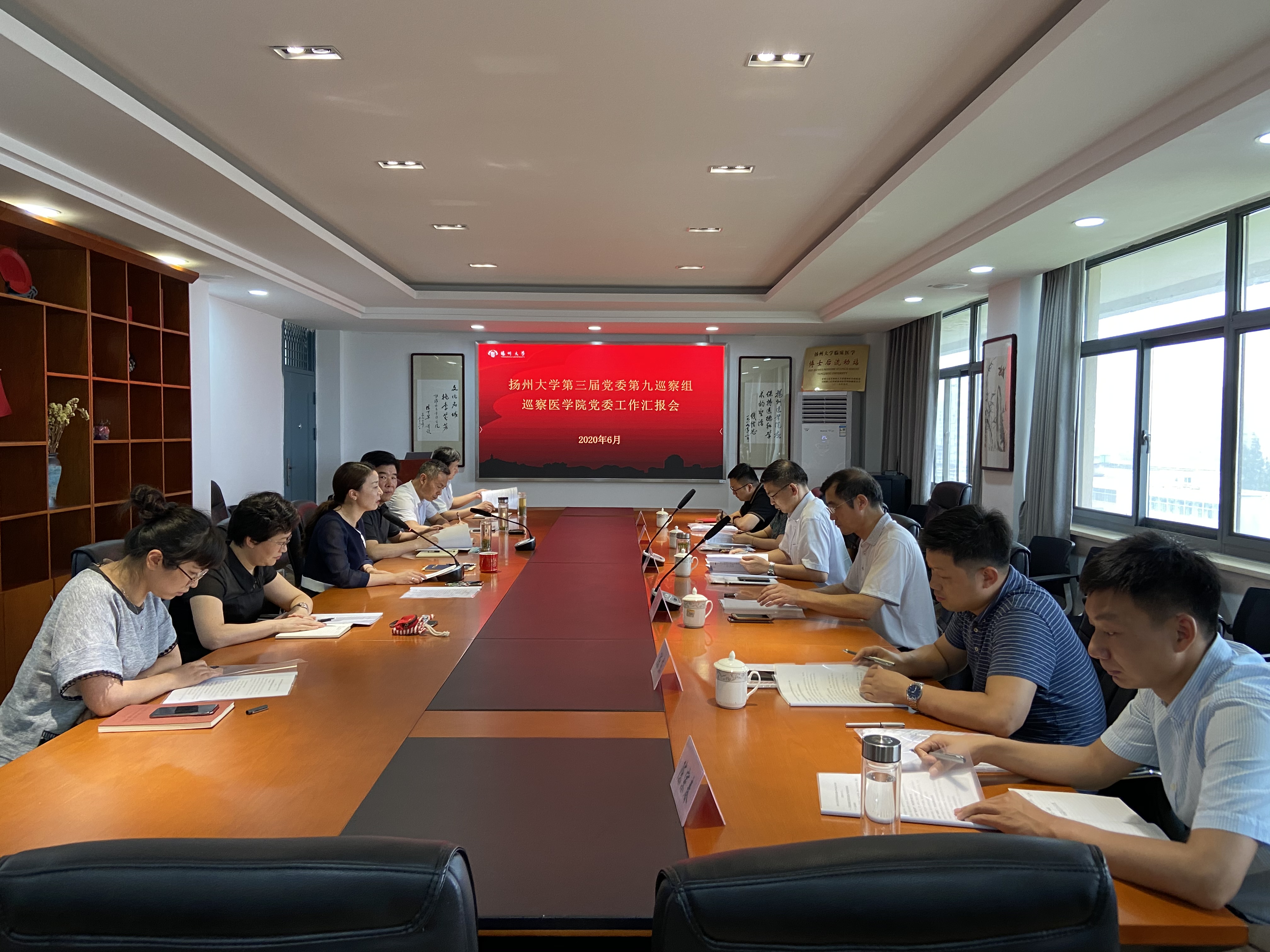 6月10日下午,扬州大学第三届党委第九巡察组巡察医学院党委工作汇报会在路北校区19号楼810会议室举行。汇报会由院党委书记徐蕾主持。