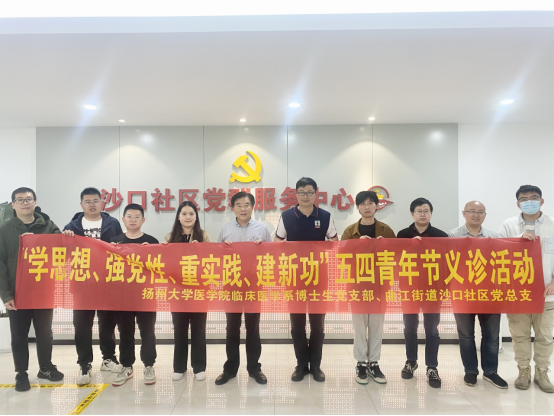 为推动学习贯彻习近平新时代中国特色社会主义思想主题教育走深走实,教育引导支部党员牢固树立以人民为中心的发展思想,日前,扬州大学医学院临床医学系博士生党支部联合广陵区曲江街道沙口社区党总支走进沙口社区居家养老服务中心,开展“学思想、强党性、重实践、建新功”五四青年节义诊活动。