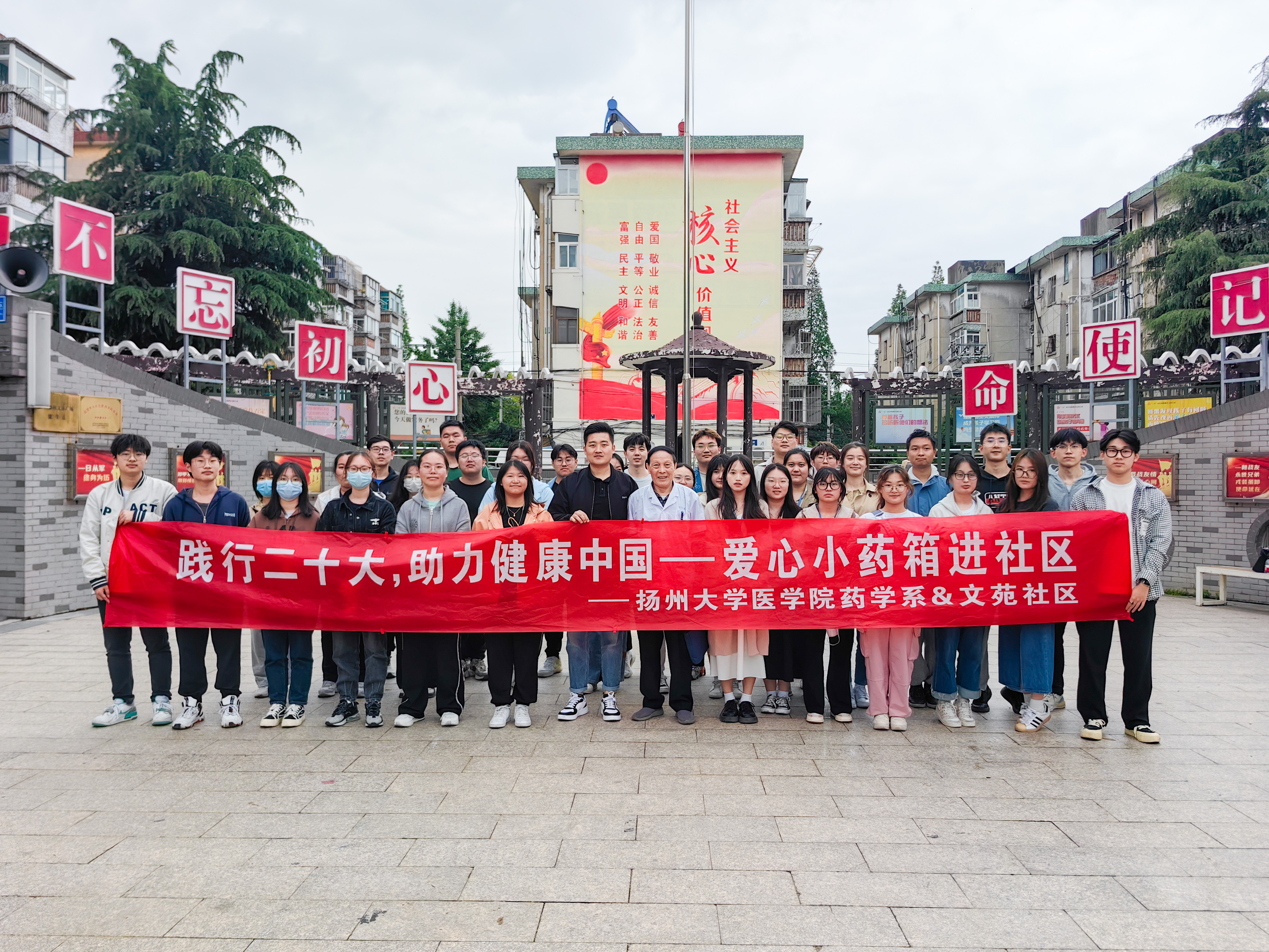 为深入学习贯彻党的二十大精神,5月6日,药学系学生党支部在文苑社区举办了“践行二十大,助力健康中国——家庭小药箱进社区”主题活动。旨在进一步普及家庭安全用药意识,引导居民合理用药,帮助社区老年人进一步了解日常保健等医学常识。