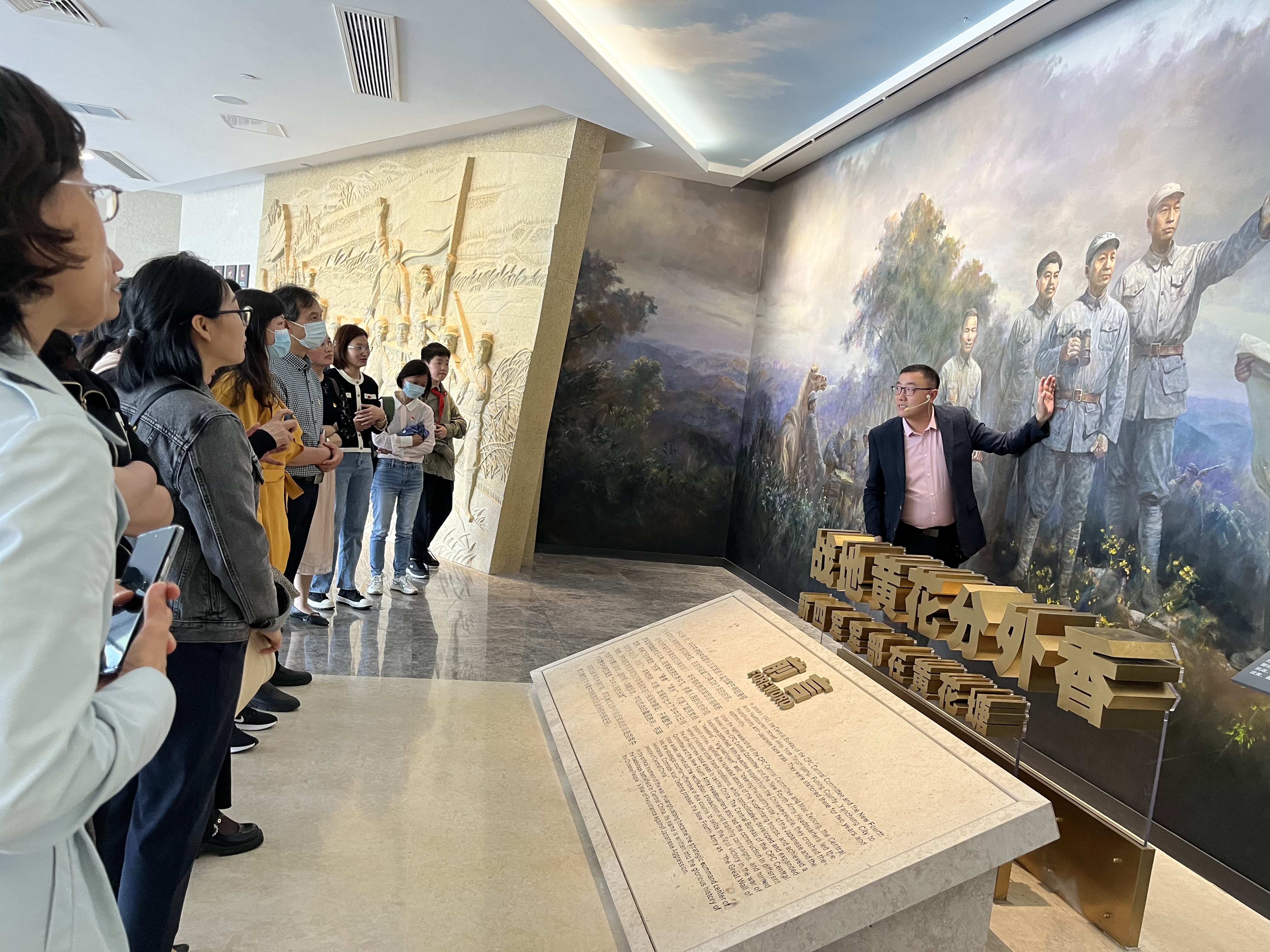 新四军铁军精神集中反映了我党我军的优良传统与作风,是革命时期留给我们的一笔宝贵精神财富。党总支成员跟随着讲解员的足迹一起参观了黄花塘新四军军部纪念馆,了解革命先辈的英雄事迹与真实历史,追寻铁军足迹,深切感悟他们不屈不挠、艰苦奋斗的精神。通过开展这样一场沉浸式、互动式、情景式的党日活动,学习和观摩老一辈革命先烈的革命事迹,领悟革命精神,激励全体党员赓续红色血脉、传承红色基因、担负红色使命。
