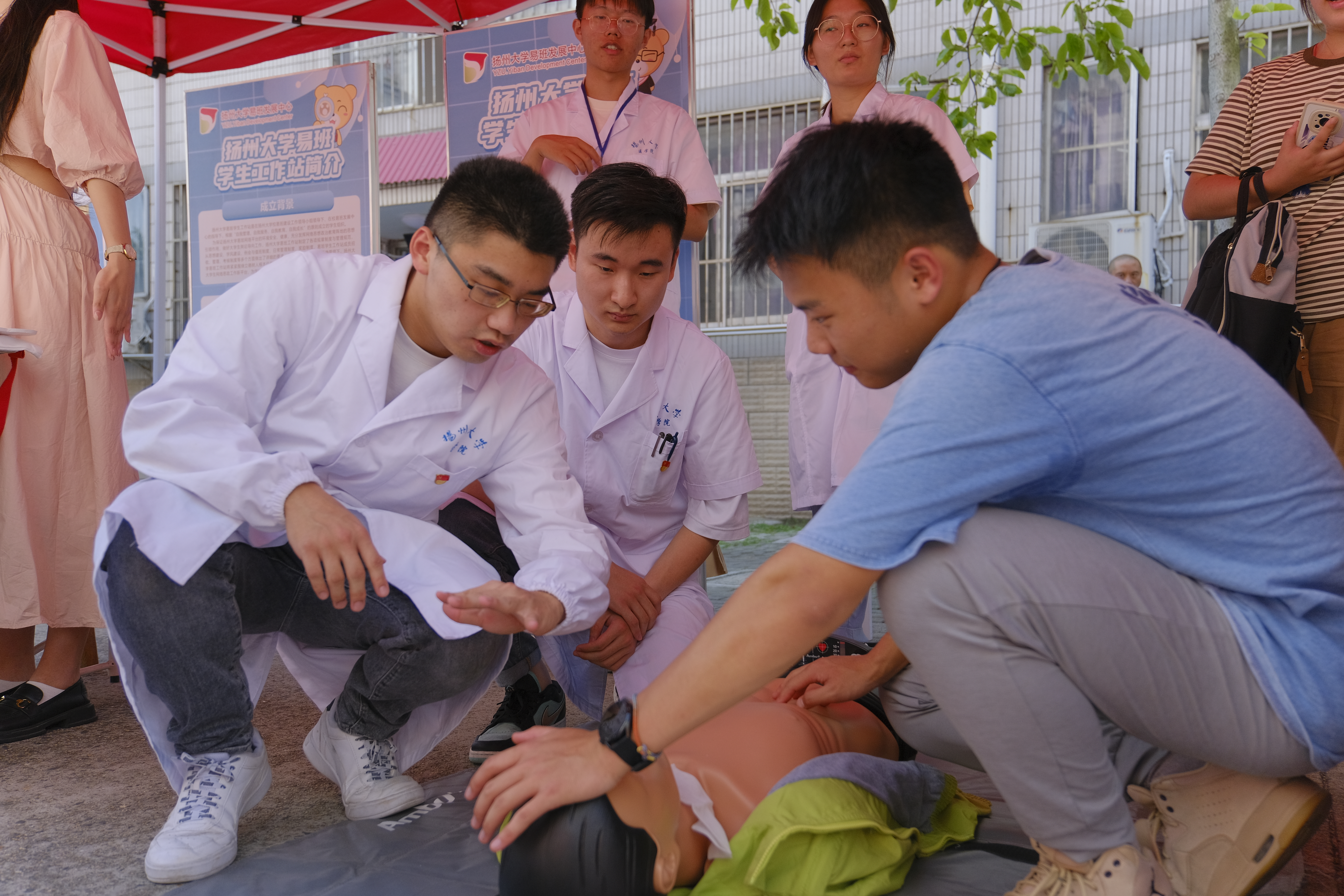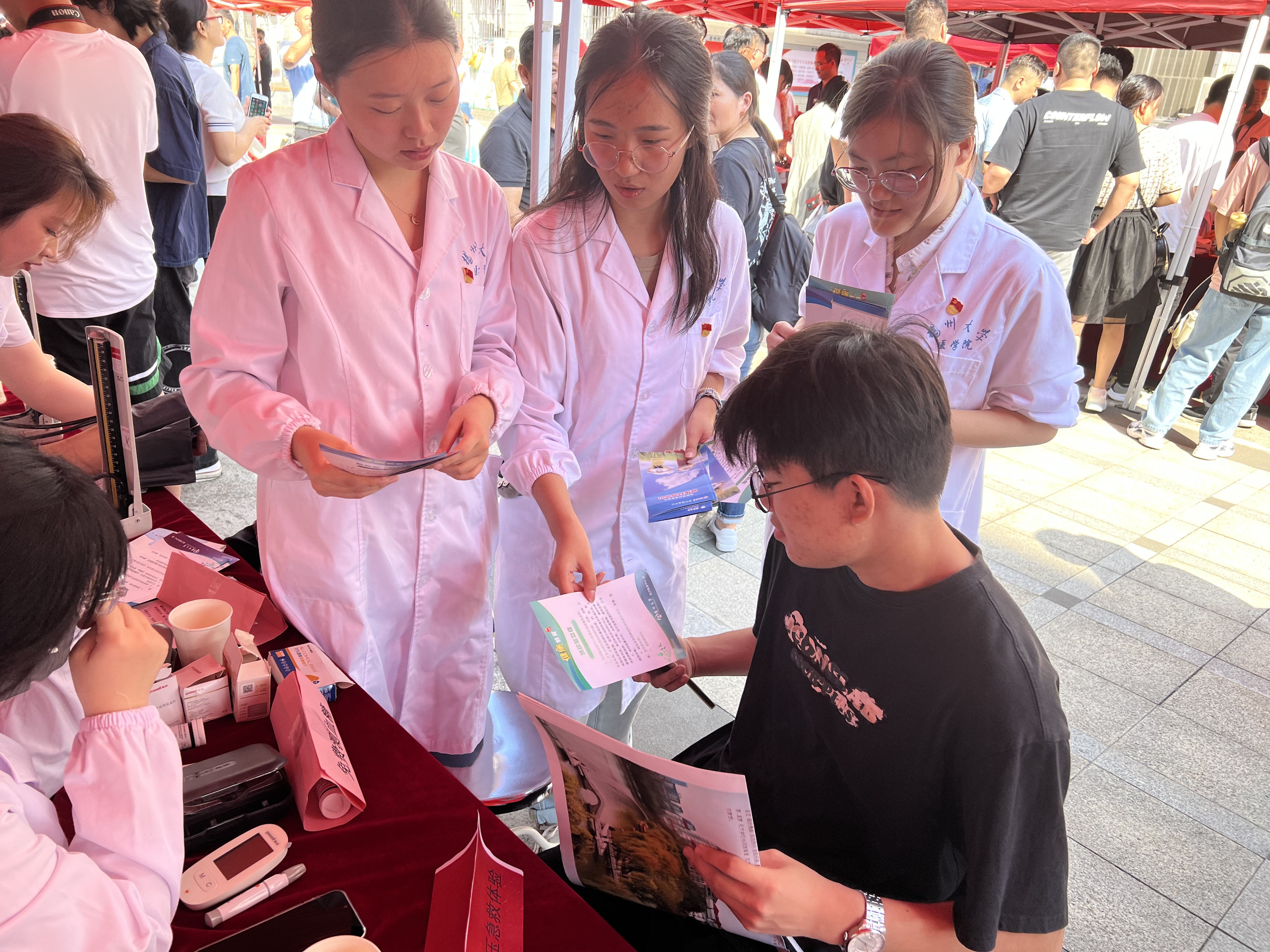 除了心肺复苏急救技能展示,一些党员还主动承担发放健康知识传单的任务,穿梭在家长和新生当中,普及高脂血症、高尿酸血症、高血压等常见疾病的注意事项及防治措施。