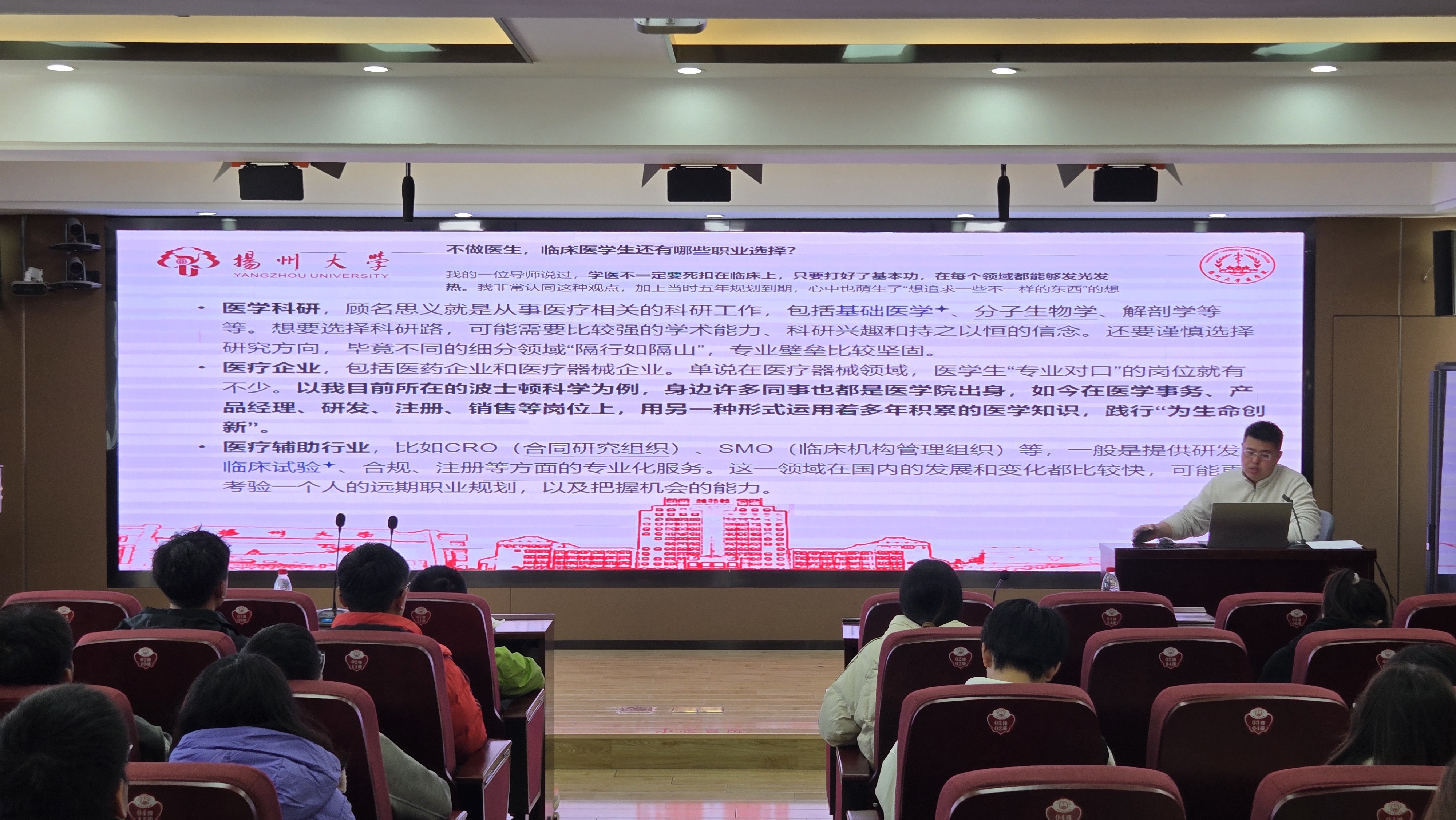 11月26日上午,临床医学系博士生外科党支部、临床医学系本科生第三党支部及医学2407班,在江阳路北校区5号楼401报告厅举行了“研本同行,学途共进”主题党日活动。此次活动旨在引导本科生正确有效地开启学术生涯规划,明确学习目标与路径,发挥党员示范引领作用,促进研本学生互助发展。