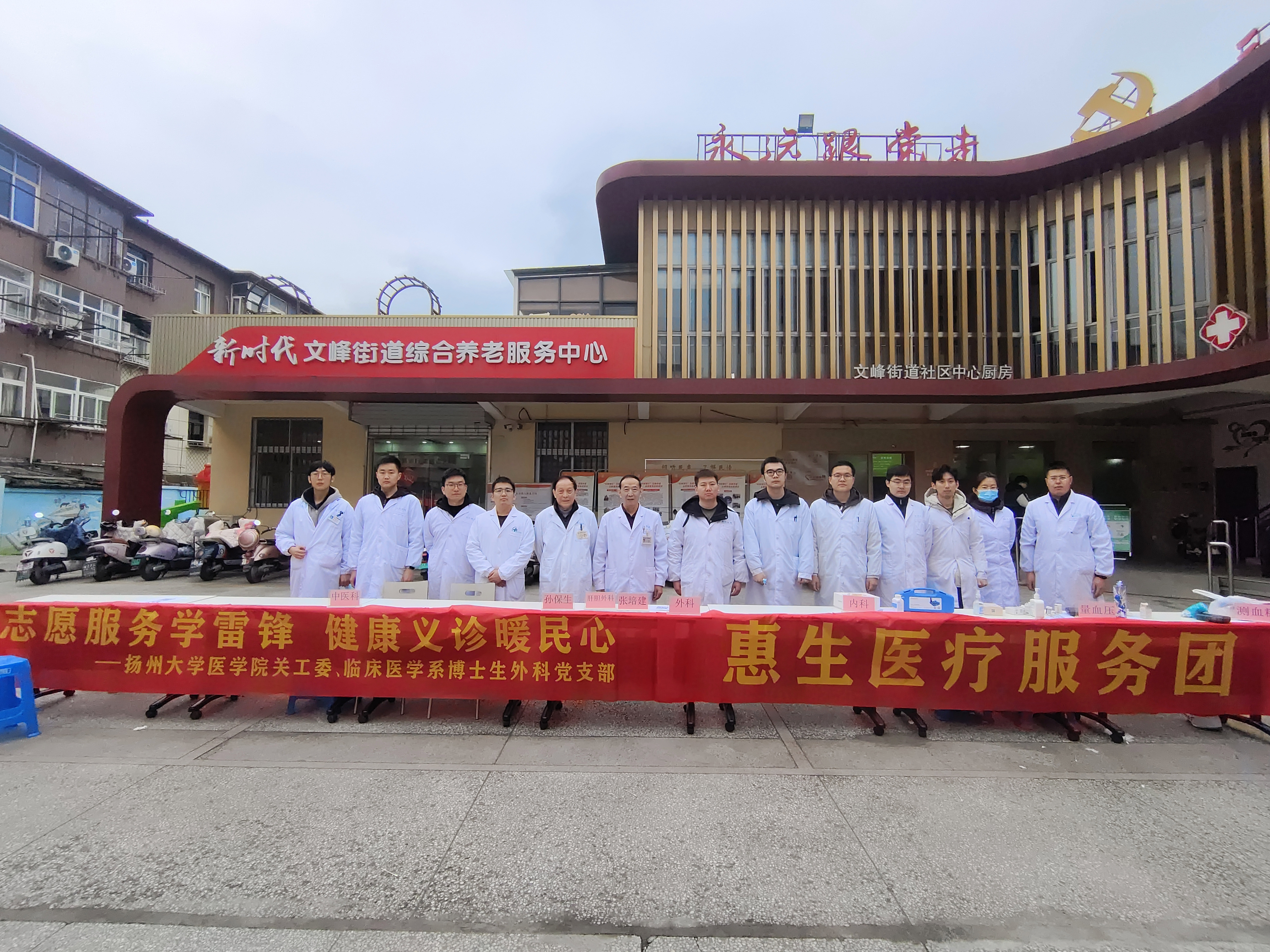 为大力弘扬雷锋精神,践行医者使命担当,3月5日,扬州大学医学院关工委专家教授带领临床医学系博士生外科党支部的党员深入三里桥社区,开展“学雷锋·送健康”公益义诊活动,以实际行动传承雷锋精神,守护百姓健康。