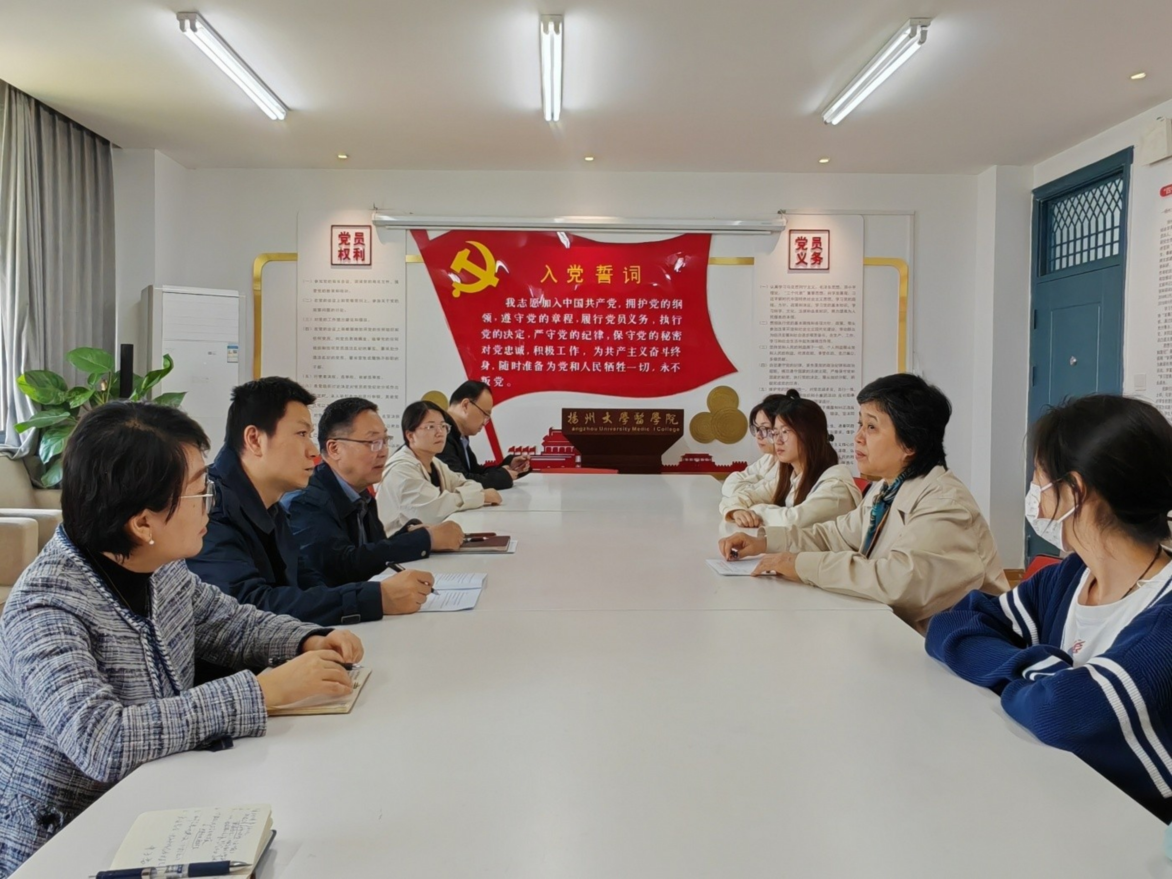 教育部首批全国高校“双带头人”教师党支部书记工作室负责人、江苏省“双百双千”党支部书记工作室示范点负责人、中西医结合学系党总支书记、教工党支部书记朱虹及支部成员与战丽彬教授就支部建设、人才培养、学科建设等工作展开热烈交流研讨。