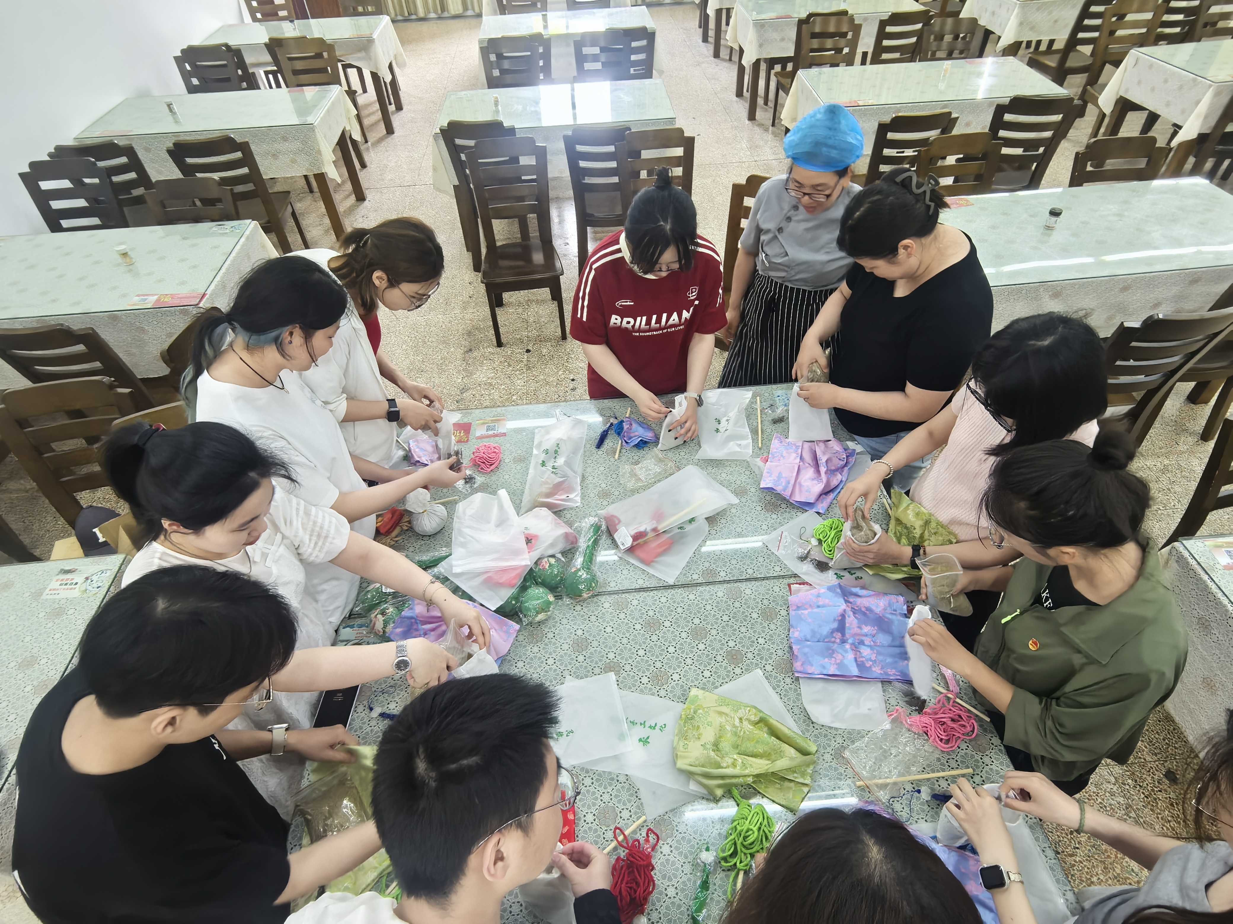 活动中,同学们还现场制作了艾草锤赠予关工委老师和食堂的工作人员。