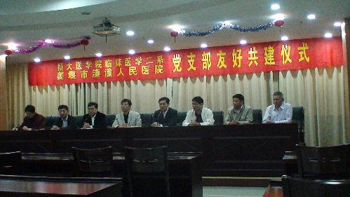 为了深入贯彻党的十七大精神,充分发挥基层党组织的战斗堡垒作用和党员的先锋模范作用,扎实开展为民服务、争先创优活动,共同促进基层党建工作和单位业务工作,结合自身的特点,合力构建优良的医疗卫生服务体系,为推进地方医疗卫生事业发展做贡献。20111016医学院临床医学二系党支部和溱潼人民医院党总支经过友好协商,决定建立长期合作机制。具体内容如下: