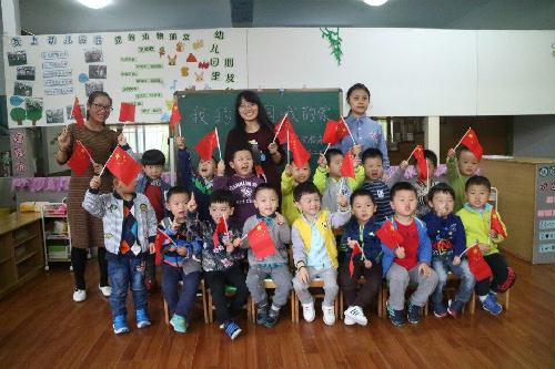 最后一个环节是教小朋友唱红歌,伴着老师弹奏的动听钢琴,小朋友们开心的唱起了歌,一段接着一段。在大家与国旗一起合影下,活动圆满的落下帷幕。