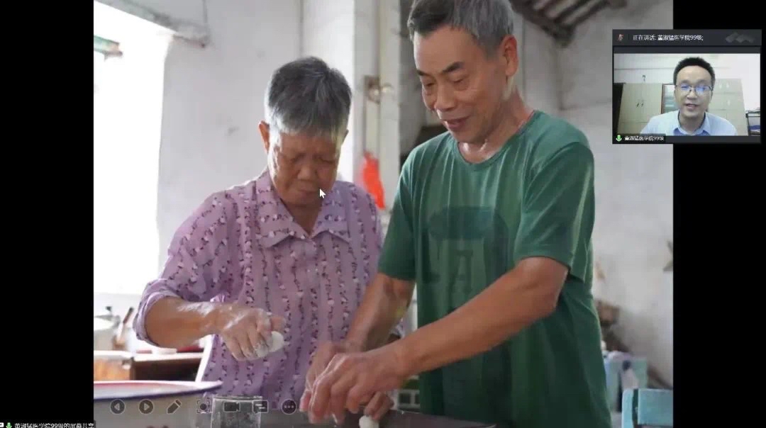 董淑猛校友为同学们讲述了自己与麻风病人从初遇到坚守的故事。2004年,实习的董淑猛第一次接触到麻风病人,那一双双眸子里矛盾而纠结的喜悦与恐慌使他他难以忘怀,内心深处的责任感被唤起,促使他将青春奉献给麻风病防治事业。“好儿女志在四方,到祖国最需要的地方去!”他接受了老院长的建议,选择了留下。十八年如一日,董淑猛坚守在玲珑医院,坚守在所有麻风病人的心中。他与麻风病的老人们一起举办婚礼,一起去海边踏浪、吃海鲜,一起在麻风村包饺子放鞭炮……2019年,董淑猛建立了“玲珑麻风博物馆”,收集过往治疗麻风病的医书与抗击麻风病的那段艰苦的历史,让麻风病和麻风病人被看见,被看清楚,被世人理解接纳,被世人尊重鼓励。