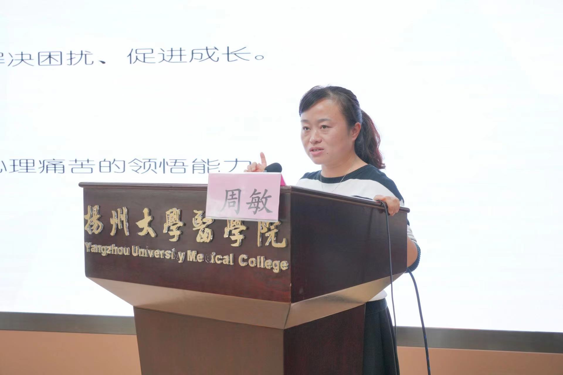 我院心理辅导员邹苏老师首先对常用的心理测评量表作了简要介绍,并针对本学期新、老生心理普测结果做了具体解读。随后,周敏老师从高校心理健康教育现状、心理普测的意义与重要性、心理健康教育的方法及注意事项等多方面进行了具体讲解,将学科理论与心理健康教育实践相结合,引导班主任关注学生的日常行为举止,以恰当的方式和合适的界限为学生排解忧愁。