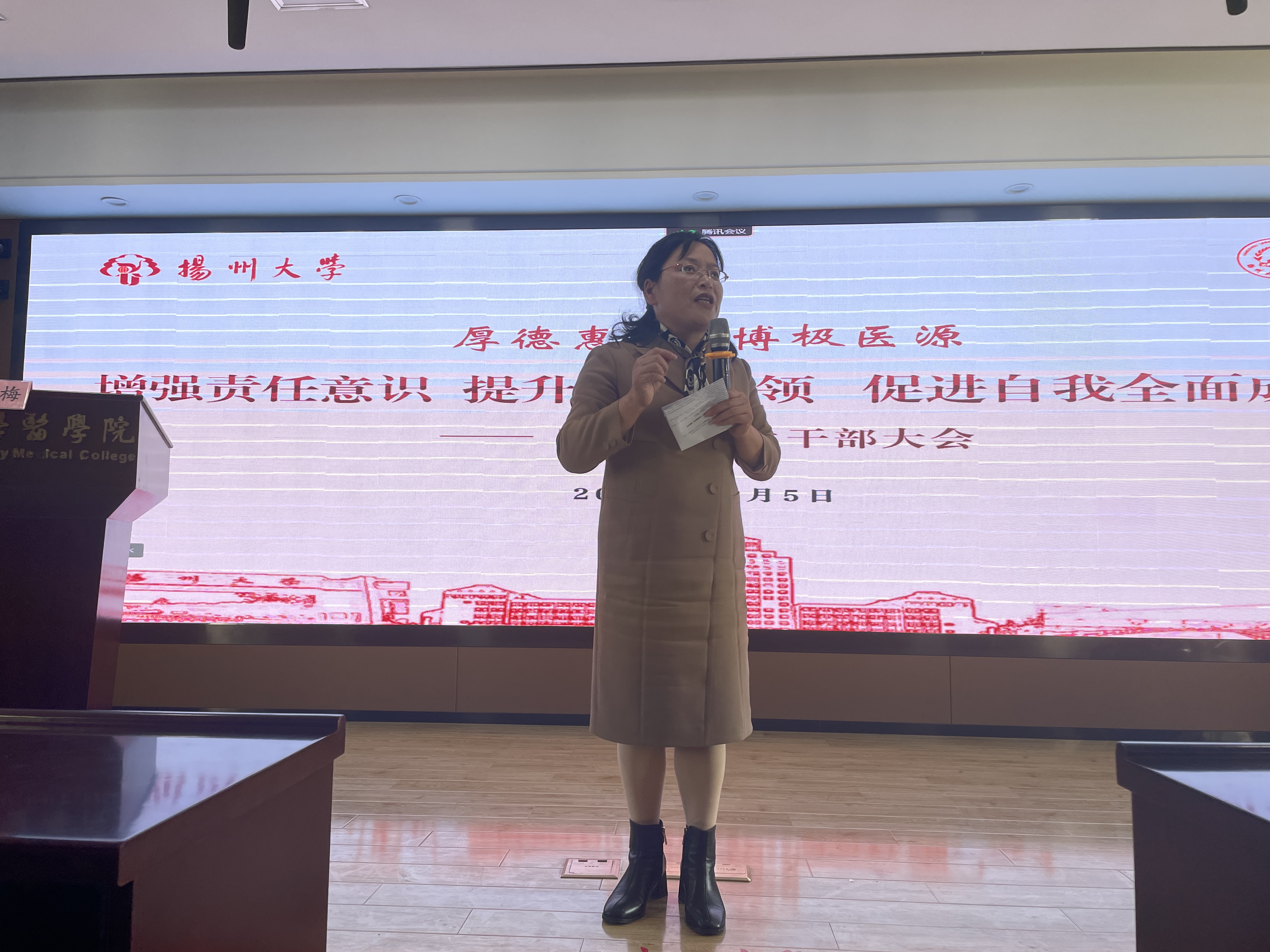 为加强学院学生干部队伍建设,提高学生干部队伍综合能力与素质,11月5日上午11点,医学院召开全院学生干部大会,由院党委副书记左红梅老师主讲,学院辅导员及院系班级学生干部代表线下参加,其余学生干部及全体宿舍长线上参加了本次会议。左书记围绕“学生干部思想理念武装,工作方法锤炼,媒体素养提升,文明礼仪教育,宿舍氛围营造”等方面对学生干部提出高要求,并进行悉心指导!会议对于增强学生干部责任意识,提升服务本领,促进学生干部全面成长起积极作用!