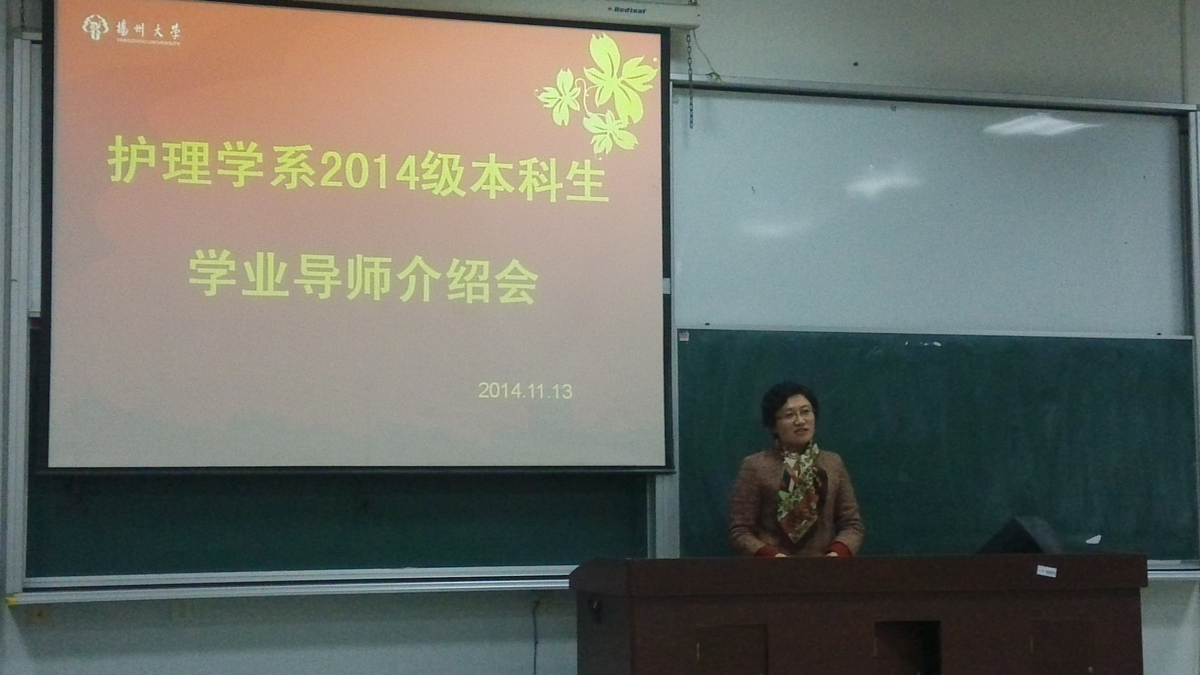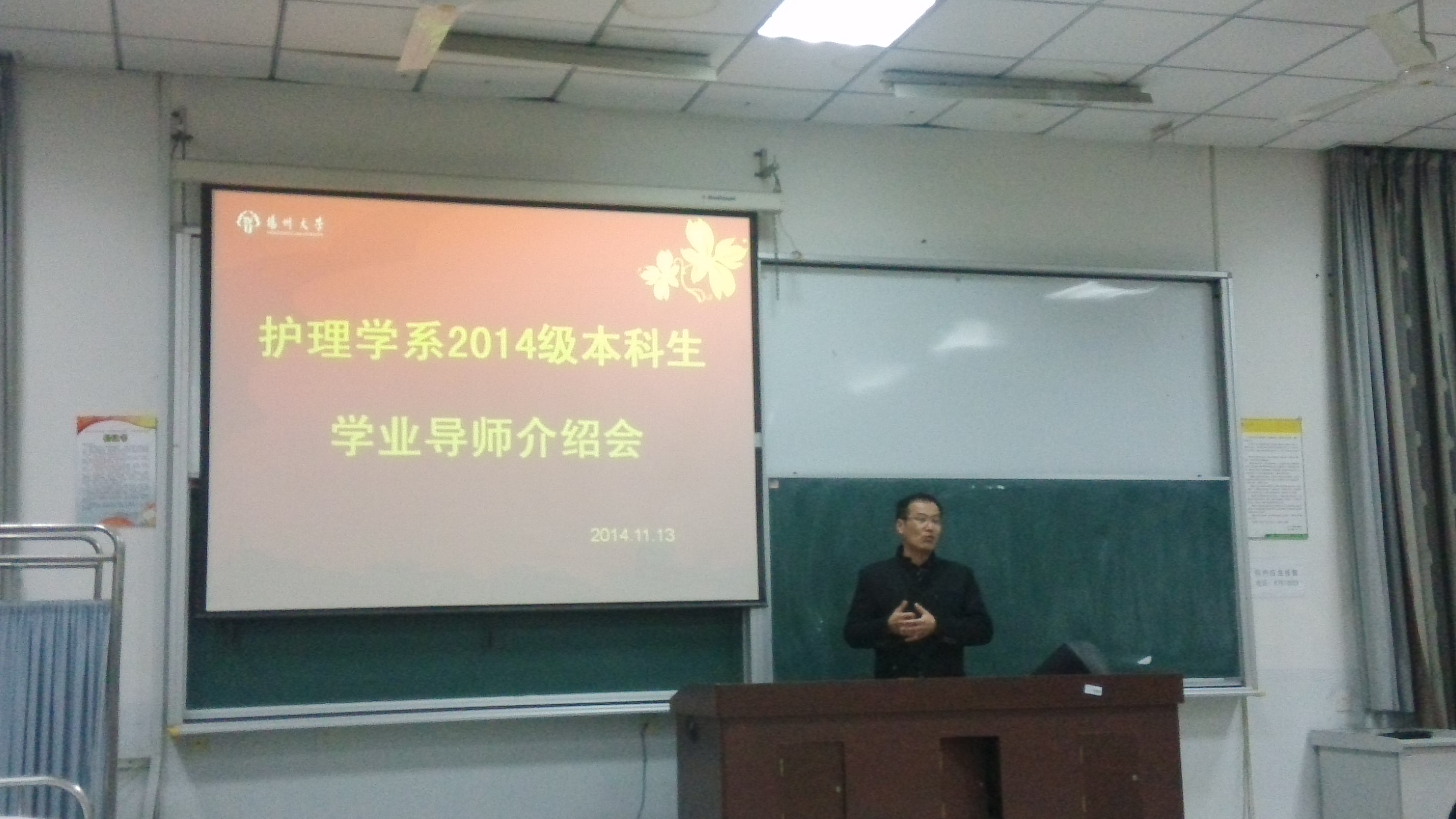 11月13日晚7点,在院教学楼101教室召开医学院护理学系学业导师介绍会。院党委副书记陈轶群、副院长郑英、护理学系全体老师和护理学系2014级全体本科生出席了此次大会,会议由院办公室主任王劲松主持。