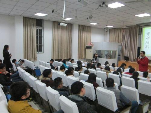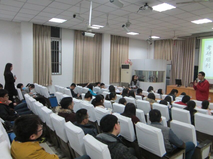 首先,在2016届研究生考试中取得成功的学长学姐进行了演讲,和低年级同学们分享考研经验,包括考试要点、复习方法、复习态度、应试技巧以及复试的基本流程和考研过程中的一些经验教训。学长学姐们的发言生动有趣,同时很有针对性,为各个专业和方向的低年级同学提供了很好的参考和借鉴,同学们也听得十分认真,仔细地做着笔记,生怕错过某句话。接下来是自由问答环节,由现场准备考研的同学向学长学姐们请教心中的困惑。整个问答环节紧张有序,学长学姐们各抒己见,条理清晰,从不同角度回答同学们的问题,让学弟学妹们受益匪浅。