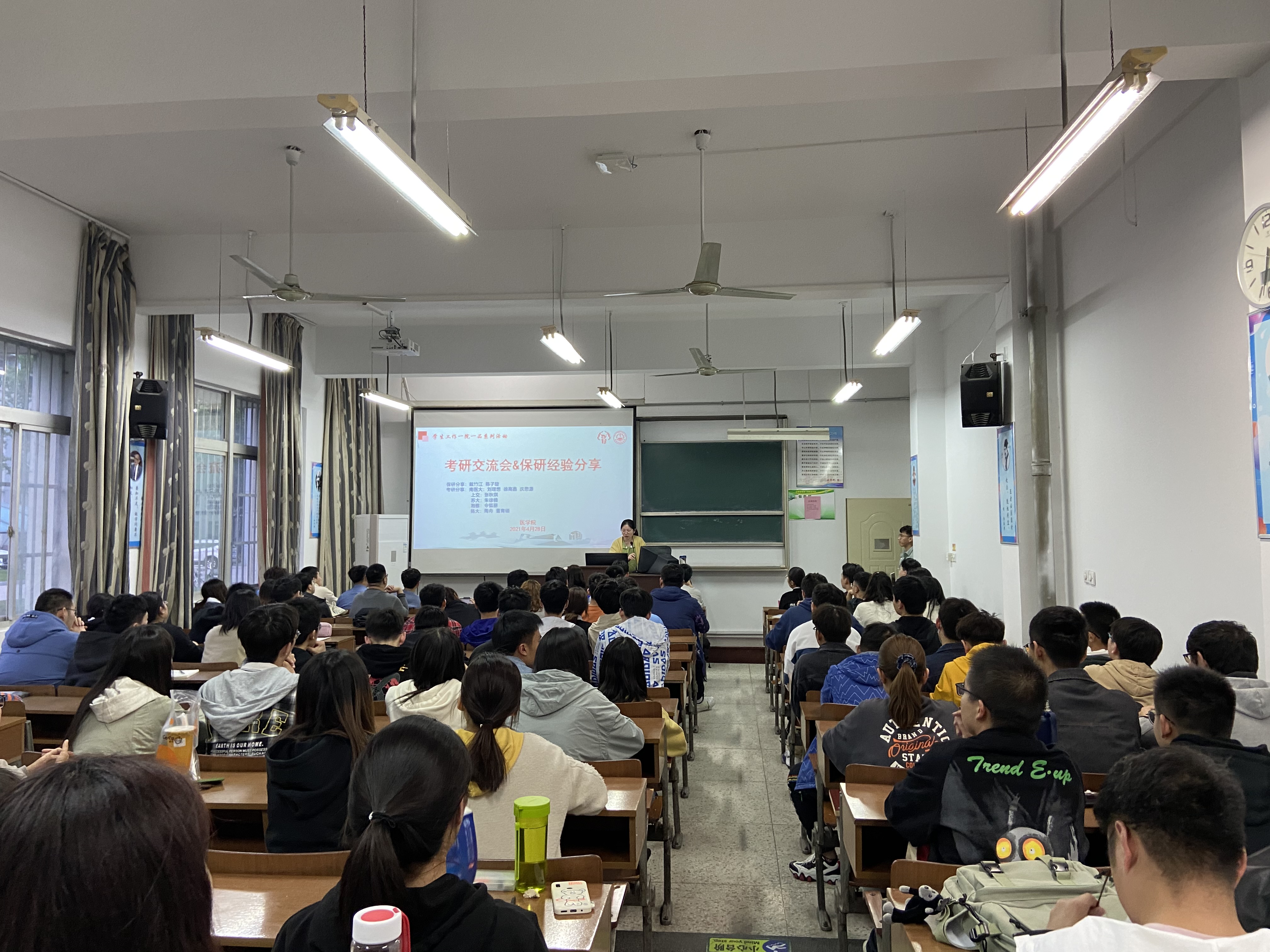 2021年4月28日晚,我院在5号楼112教室成功举办了考研和保研分享交流会。讲座由我院团委副书记李吉豫老师主持。临床医学2016级共10名考研保研成功的学长学姐与数百名临床医学专业的同学分享了考研经验。