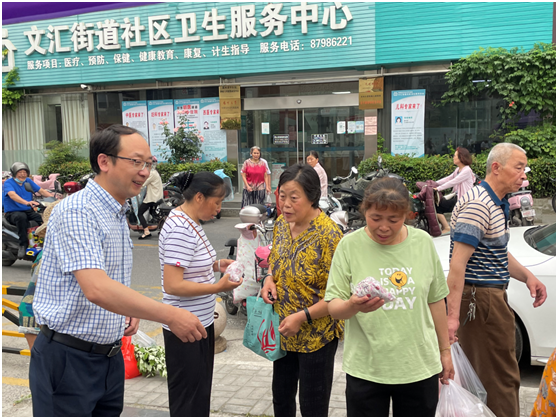 为充分发挥毕业生党员先锋模范作用,更好地体现党和群众的密切联系,增强居民医疗健康意识,6月10号,扬州大学医学院中西医结合学系教工党支部组织毕业生党员到文汇街道社区卫生服务中心开展义诊志愿服务活动。