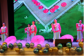 晚会上,由师生共同精心编排、联袂奉献的文艺演出精彩纷呈。由我院关工委张清莉、李慧敏、李雅丽、杨秀芳、牛岫琴、何荣老师带来的舞蹈《如此美丽》,在老师们婀娜的身姿中带我们领略了扬州城千年的风云变换,赢得了全场师生阵阵热烈的掌声,将演出现场氛围推向了高潮。瘦西湖上船儿悠悠,大运河中月色荡漾。风流才子在此泼墨挥毫,寻常百姓在这里游玩嬉笑,万家希望都飘向了璀璨星河。
