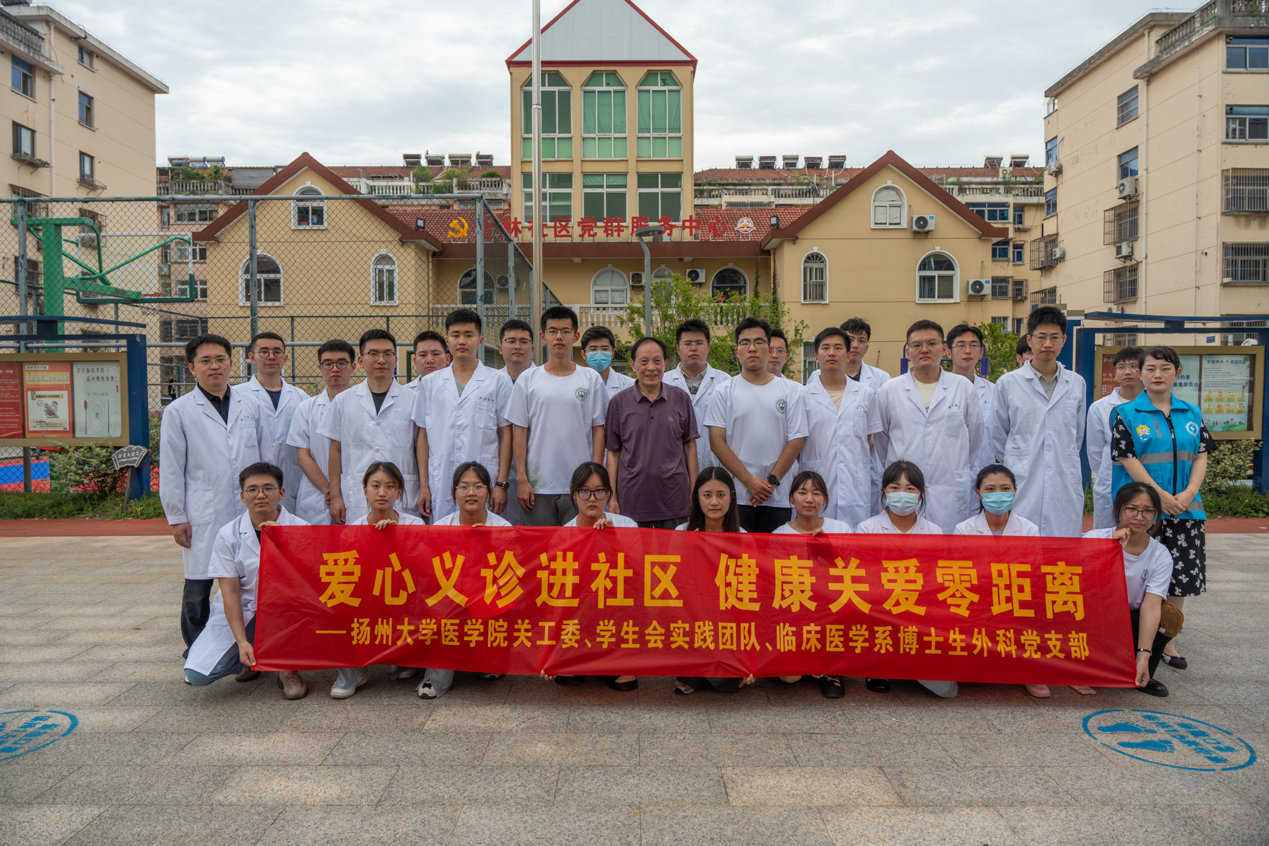扬州大学附属医院肝胆外科专家张培建教授,扬州大学附属苏北人民医院中医专家孙保生教授带领临床医学系博士生外科党支部二十余名博士研究生党员和学生会实践团队开展义诊,现场共设中医科、心胸外科、心内科、肝胆外科、骨科等六个科室。