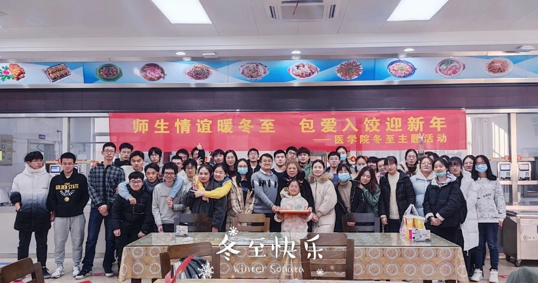 12月19日,医学2002班在荷花池校区食堂举办了“师生情意暖冬至,包爱入饺迎新年”冬至主题活动,特别邀请了淮海路校区离退办的马瑞玲老师参加本次活动。
