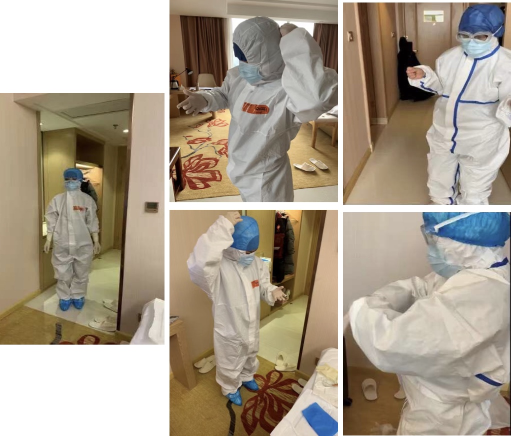 因为时间紧迫,经过简短的休整和培训后,黄陂一中方舱医院在2月11日晚开始接收病人。为了让组员能更快的进入状态,她利用休息时间挨个房间指导组员穿脱隔离衣,并严格细节,一丝不苟。