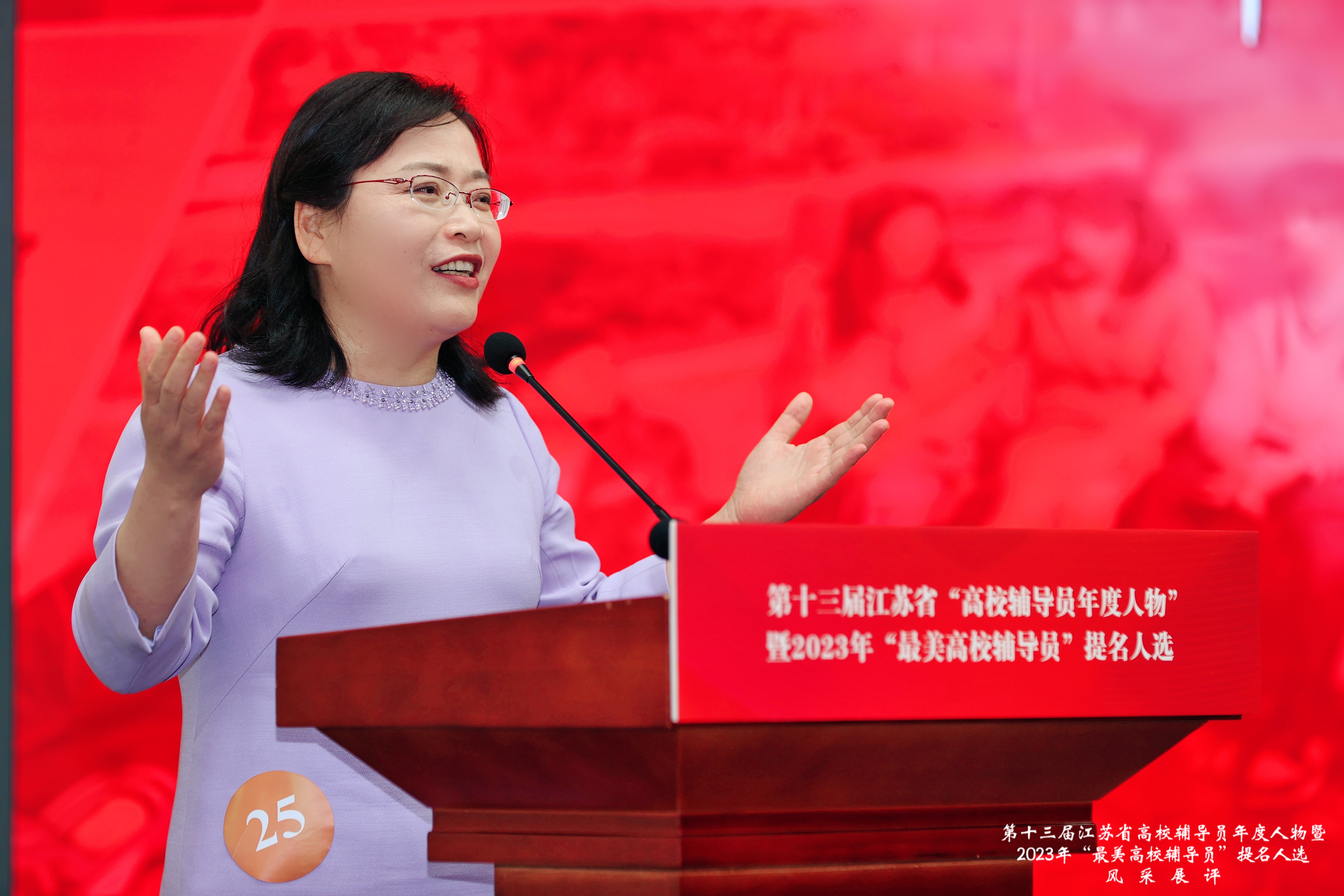 此次推选按照事迹感人、表现突出、影响力大、示范性强的标准,坚持公平公正、培优选优的原则,经学校推荐、材料审核、专家初评、风采展示、结果公示等流程。我院辅导员左红梅老师凭借扎实有效的先进事迹和动人心弦的现场展评,在39名提名人选中以第四名的好成绩脱颖而出,荣获2023年江苏省“最美高校辅导员”称号。