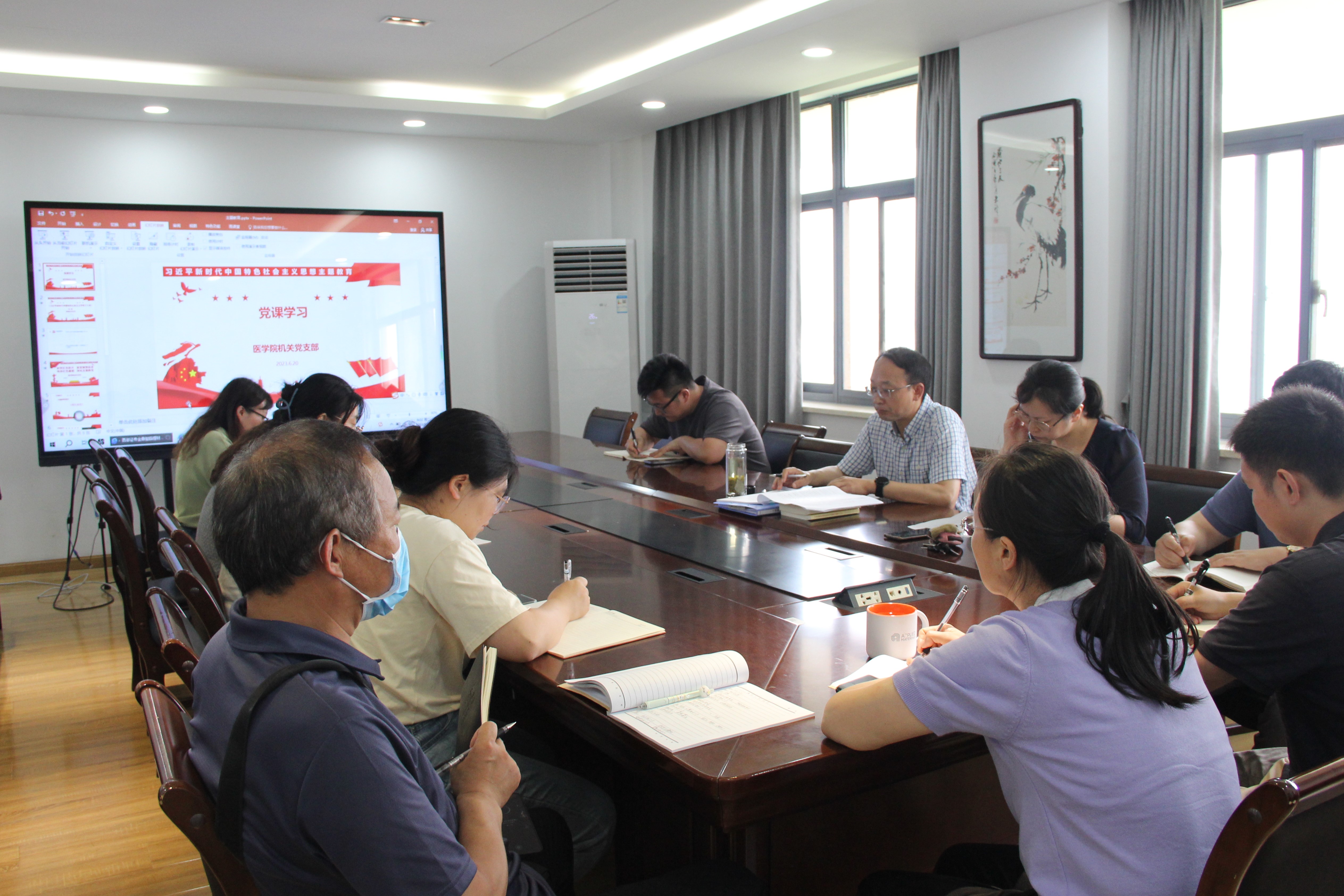 2023年6月20日,医学院机关党支部举行主题教育专题党课。主题党课以学习“习近平新时代中国特色社会主义思想是党和国家必须长期坚持的指导思想”为主题,钱莉院长带领机关支部党员深入学习了习近平新时代中国特色社会主义思想的形成过程、核心内容等。