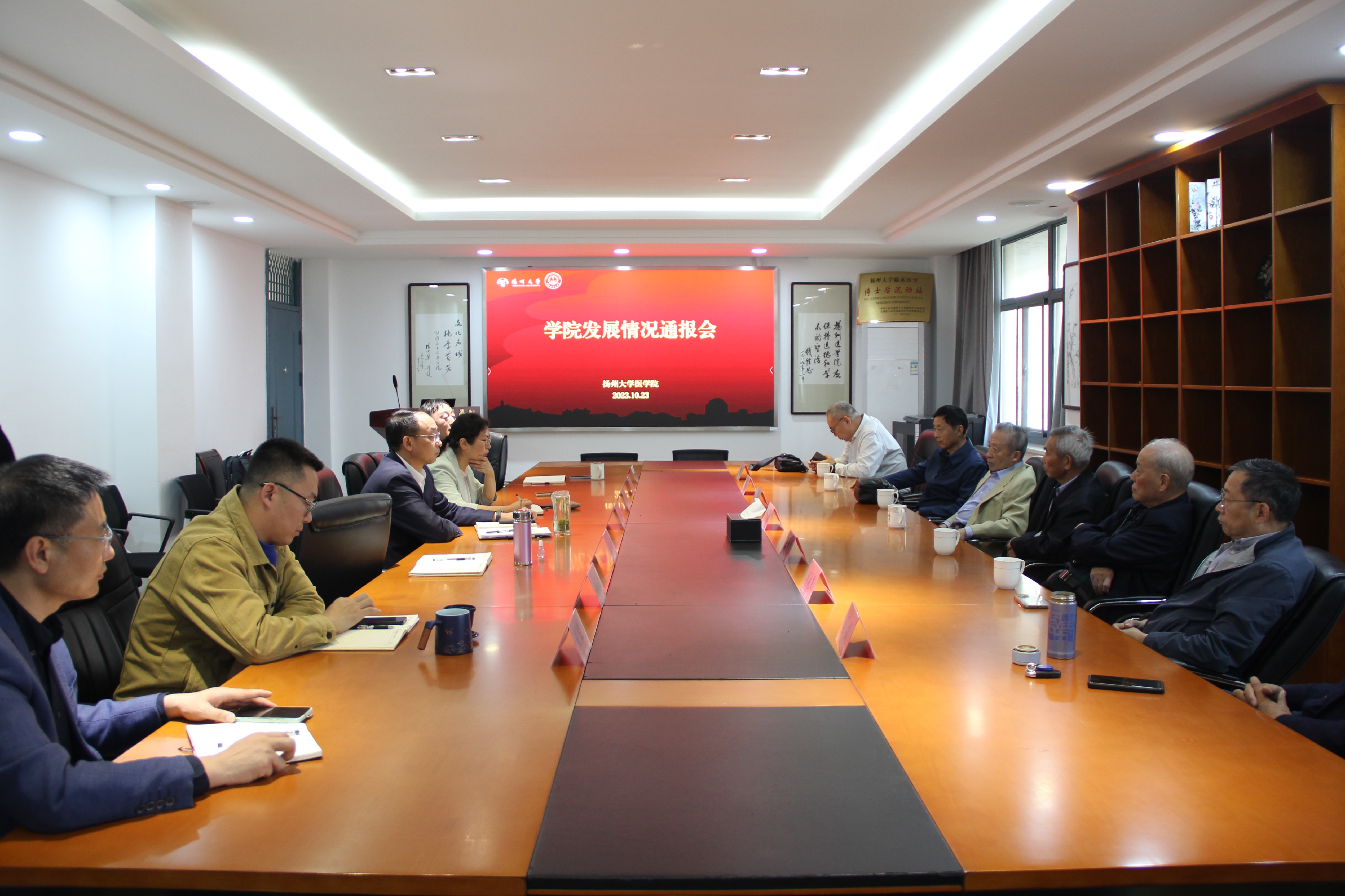 10月23日,学院在路北校区19号楼810会议室举办学院发展情况通报会,特别邀请花长友、王树槐、伏文钧、刘延庆、朱忠建、马援、刘歆农等历任领导代表参加,院长钱莉通报学院一年来的事业发展情况,院党委书记王庆林主持会议。院领导班子全体成员、工会主席、院办主任等参加通报会,共同庆祝重阳佳节,共话学院发展。