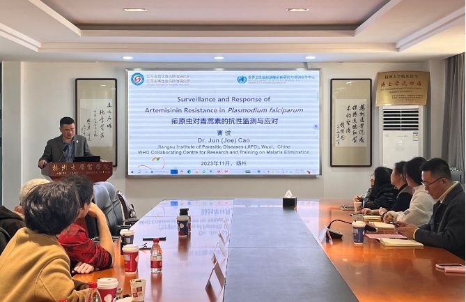 11月29日上午,法国斯特拉斯堡大学/巴斯德研究所Menard Didier教授和江苏省血吸虫(寄生虫)病防治研究所所长曹俊研究员,分别为我院师生作了题为“Plasmodium falciparumresistance to artemisinins: News from the field and the bench”、“Surveillance and Response of Artemisinin Resistance inPlasmodium falciparum”的学术报告。学术报告由颜丙春教授主持,医学院师生参加了报告会。