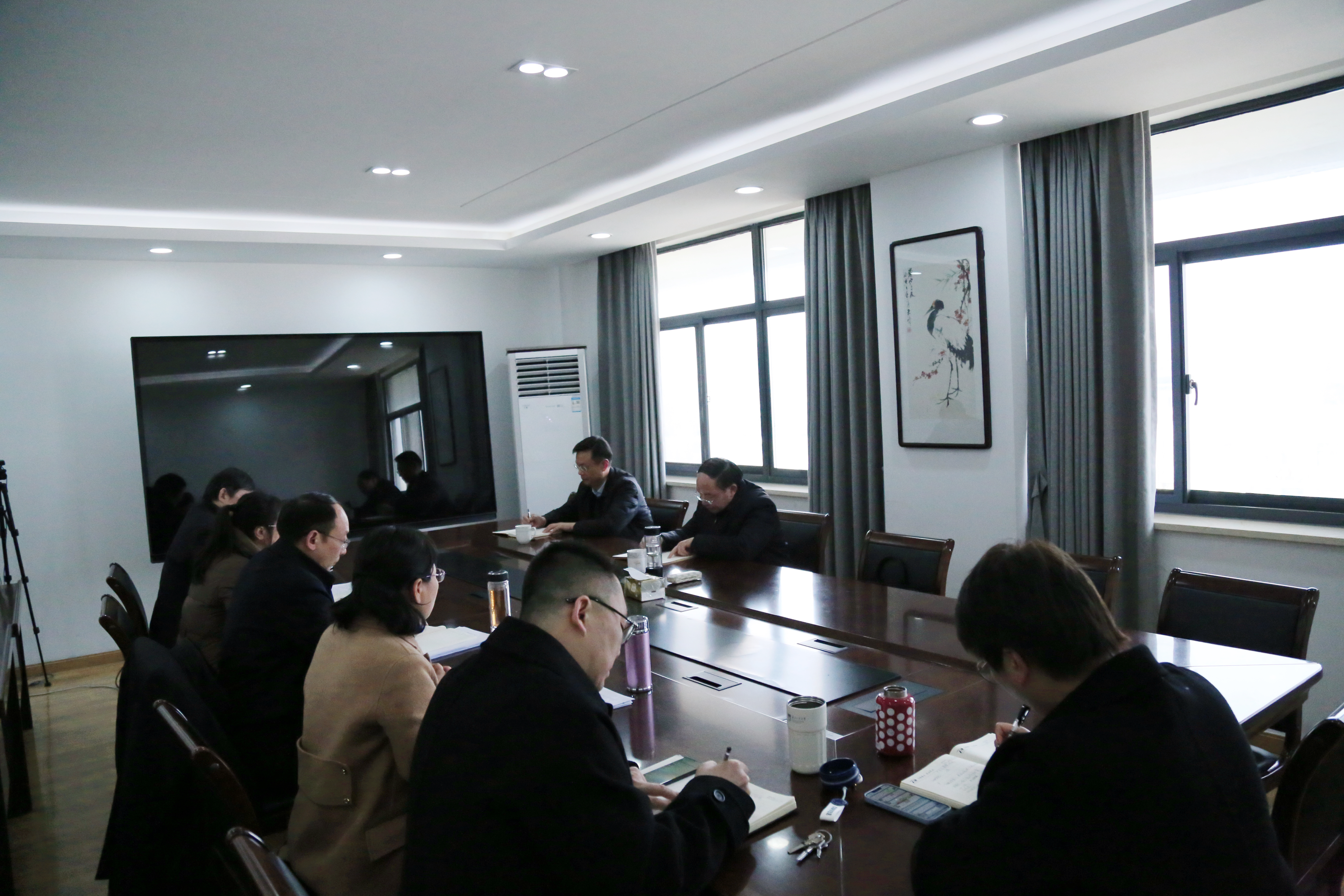 校党委办公室王军主任陪同调研。学院全体院领导、办公室主任参加活动。