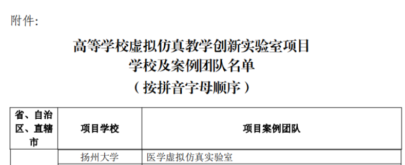 3月29日,教育部教育技术与资源发展中心(中央电化教育馆)公布高等学校虚拟仿真教学创新实验室项目学校及案例团队名单,我院“医学虚拟仿真实验室”获批该项目。该项目由钱莉教授牵头,梁景岩教授、李国才教授、程宏副教授、王小洪副教授等教师共同参与。