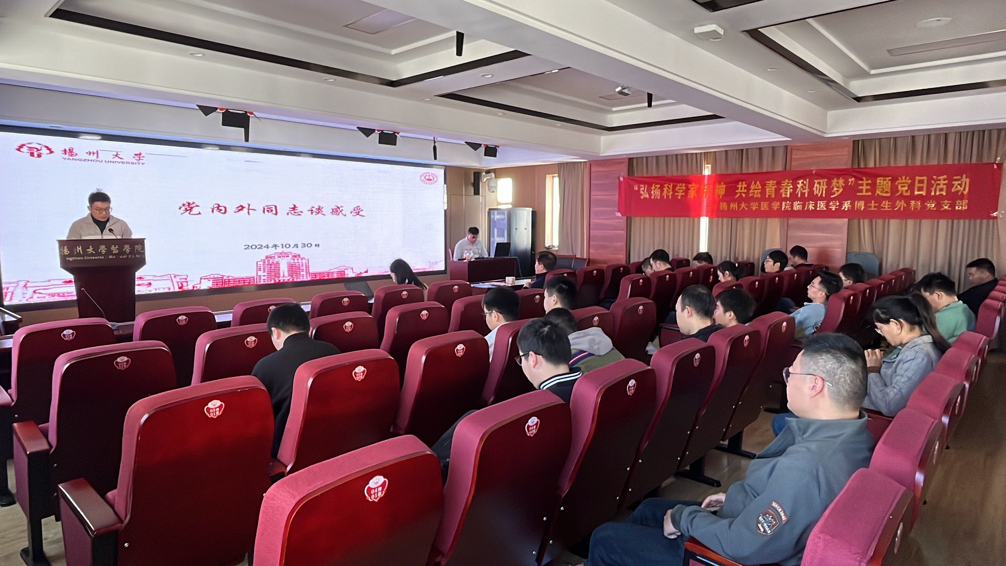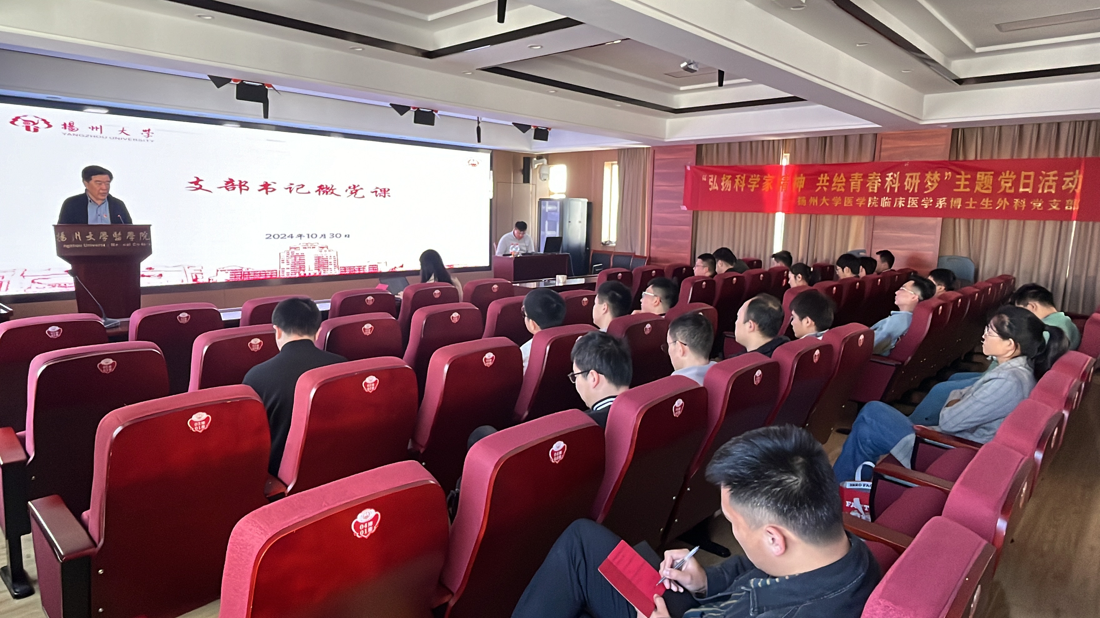 为教育引导研究生弘扬科学家精神,营造良好创新氛围,10月30日,医学院临床医学系博士生外科党支部开展“弘扬科学家精神 共绘青春科研梦”主题党日活动。