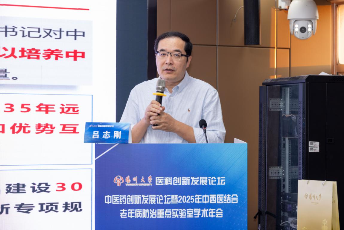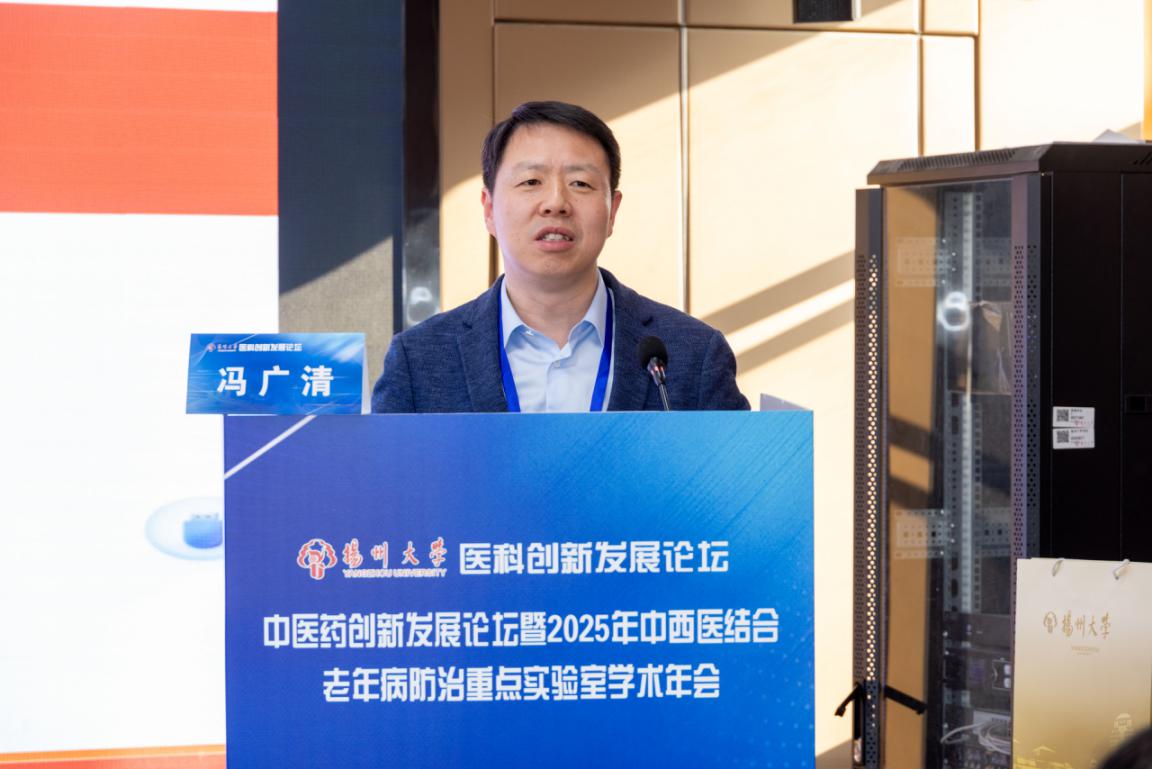 中医药创新发展论坛暨2025年中西医结合老年病防治重点实验室学术年会在路北校区5号楼401举行。论坛特邀南京中医药大学副校长孙秀兰、江苏省中医药发展中心主任冯广清、华中科技大学胡德胜教授、中国药科大学李飞教授、南京中医药大学吕志刚教授及扬州大学奚菊群教授作报告。医学部中医药学院党委书记高静出席并讲话,院长颜丙春主持论坛。