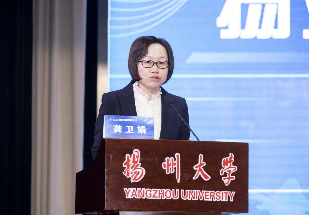 12月7日,扬州大学医科创新发展论坛在荷花池校区大学生活动中心三楼小剧场举行。我校党委书记丁建宁、校长刘巧泉,江苏省卫生健康委员会副主任鲍军,扬州市副市长刘流,我校副校长赵文明、王承堂、韩杰,中国科学院院士、我校校友李劲松,扬州市卫生健康委员会党委书记尹成雷、主任王劲松,扬子江药业集团党委副书记蔡伟等出席开幕式。副校长龚卫娟主持开幕式。