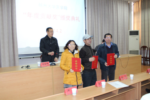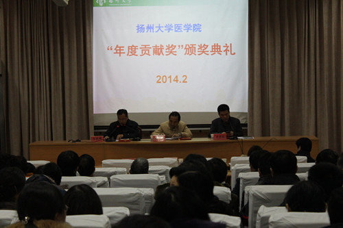 2014年2月26日下午,学院召开全院教职工大会,总结2013年工作,布置2014年工作,隆重表彰2013年“年度贡献奖”的获奖个人和集体。