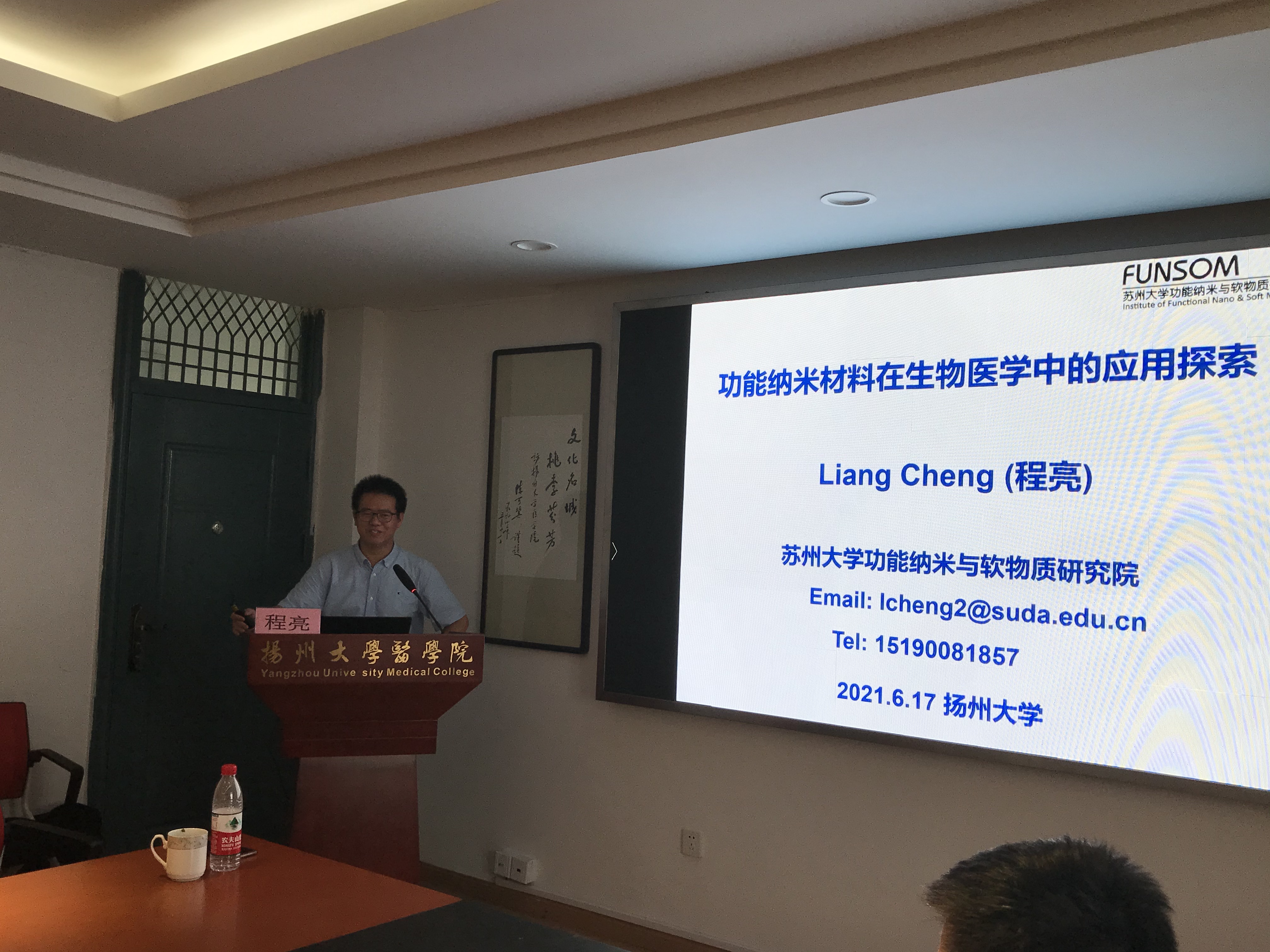 6月17号上午,教育部青年长江学者,苏州大学功能纳米与软物质研究院程亮教授做客我院医源论坛第94期,以“功能纳米材料在新型肿瘤诊疗中的应用探索”为题进行了学术报告,颜丙春副院长主持会议。