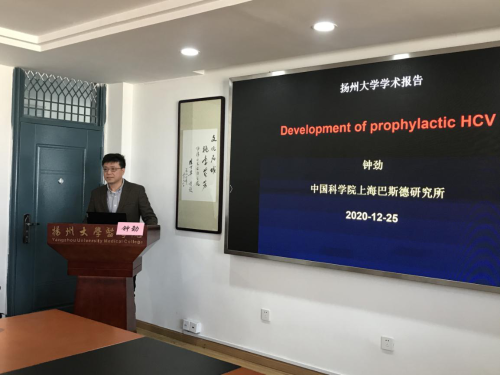 12月25日上午,学院邀请中科院上海巴斯德研究所钟劲教授在医学院19号楼810室做了一场关于丙肝病毒疫苗研发的讲座,副院长郑英教授主持讲座,学院从事相关领域研究的老师和研究生参加了该活动。
